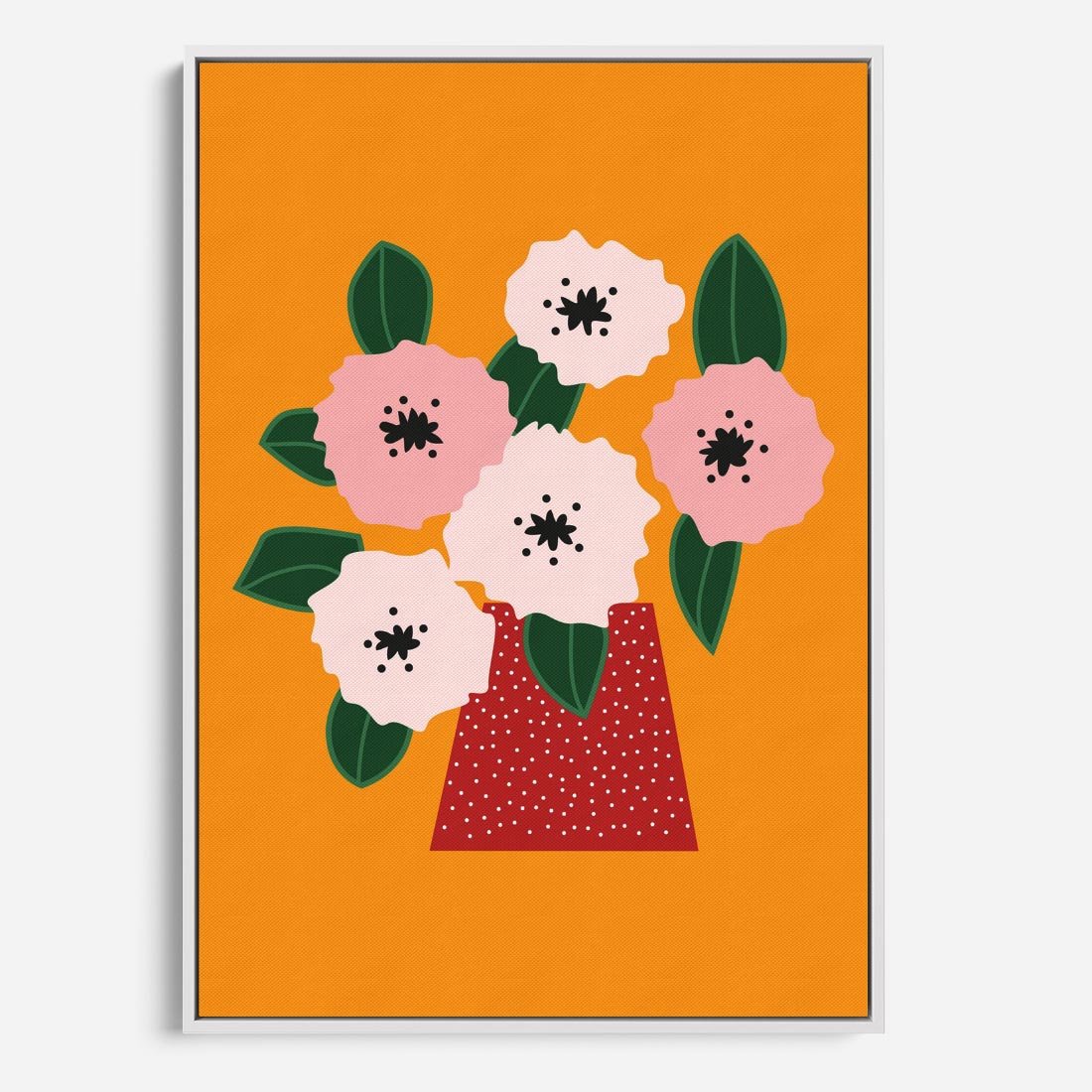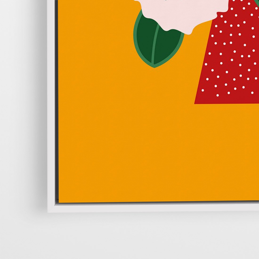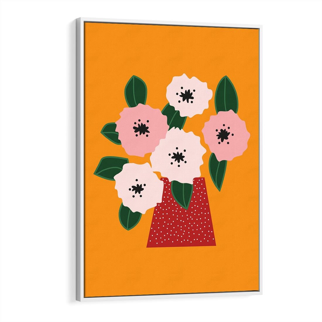 Ten nowoczesny plakat ukazuje abstrakcyjne kwiaty na jasnym żółtym tle. Sztuka ta przenosi nas w dynamiczną opowieść kolorów i form, dodając energetycznego wyrazu i stylu do przestrzeni.