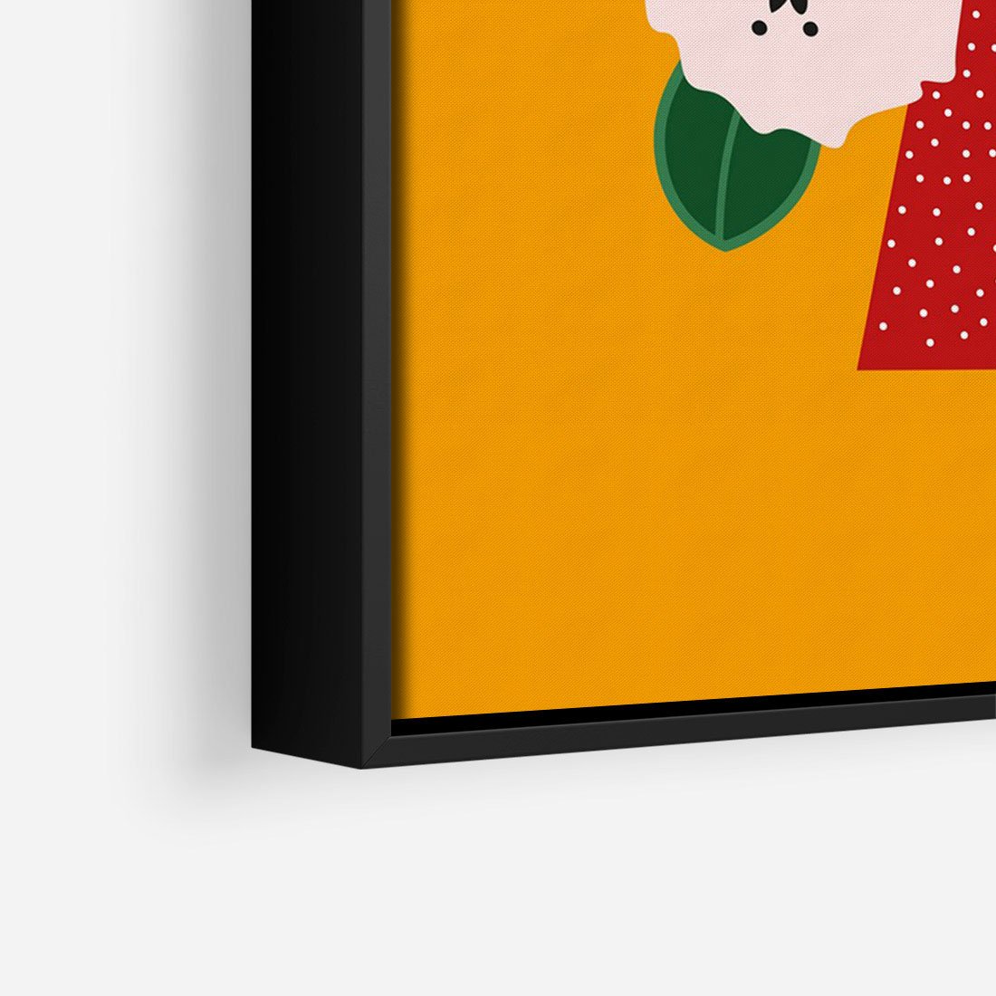 Obraz w ramie 50x70 - Harmonijne Granice - abstrakcyjne kwiaty, żółte tło - rama czarna