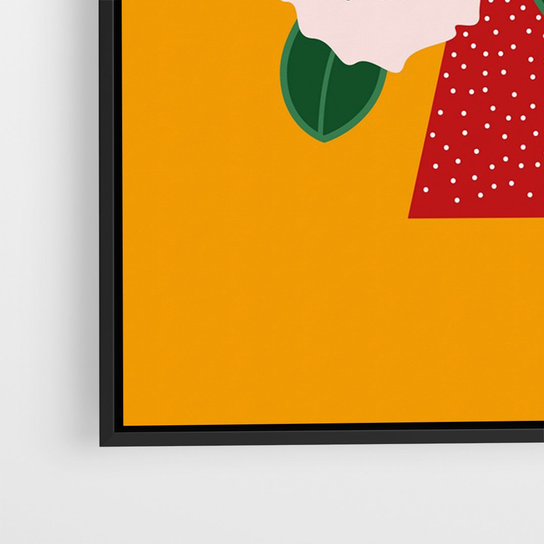 Ten nowoczesny plakat ukazuje abstrakcyjne kwiaty na jasnym żółtym tle. Sztuka ta przenosi nas w dynamiczną opowieść kolorów i form, dodając energetycznego wyrazu i stylu do przestrzeni.