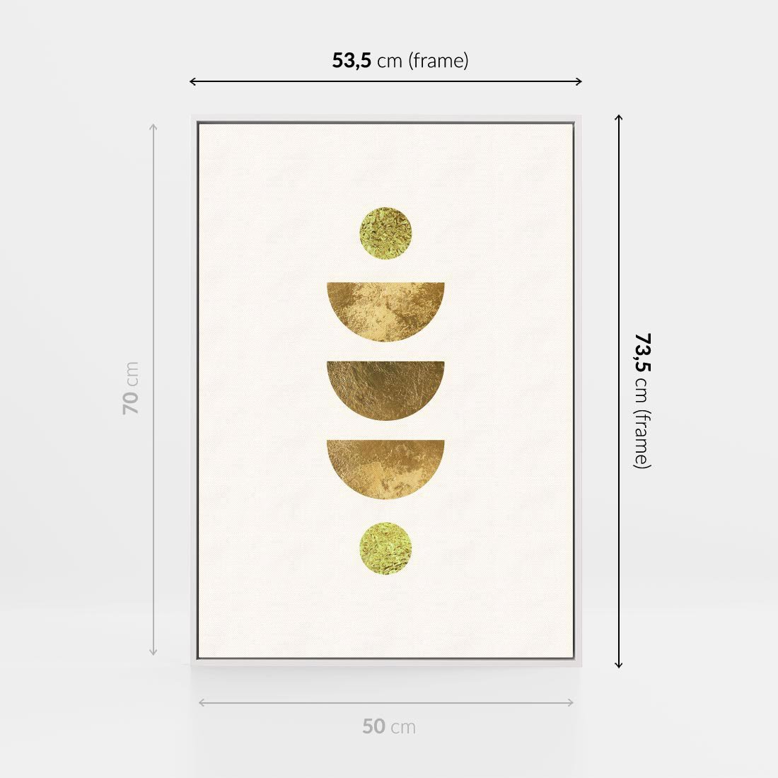 Obraz w ramie 50x70 - Harmonijne Odbicia - geometryczne złote kształty, tekstura - rama biała