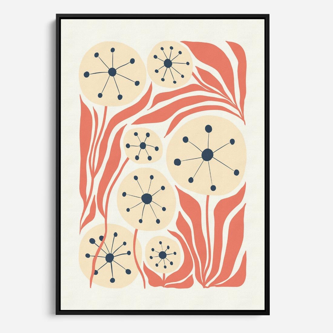 Ta sztuka przenosi nas w abstrakcyjny świat kwiatów i dmuchawców, zanurzając się w delikatnych pastelowych kolorach. Kompozycja tworzy magiczną podróż przez naturę, pełną piękna i harmonii.