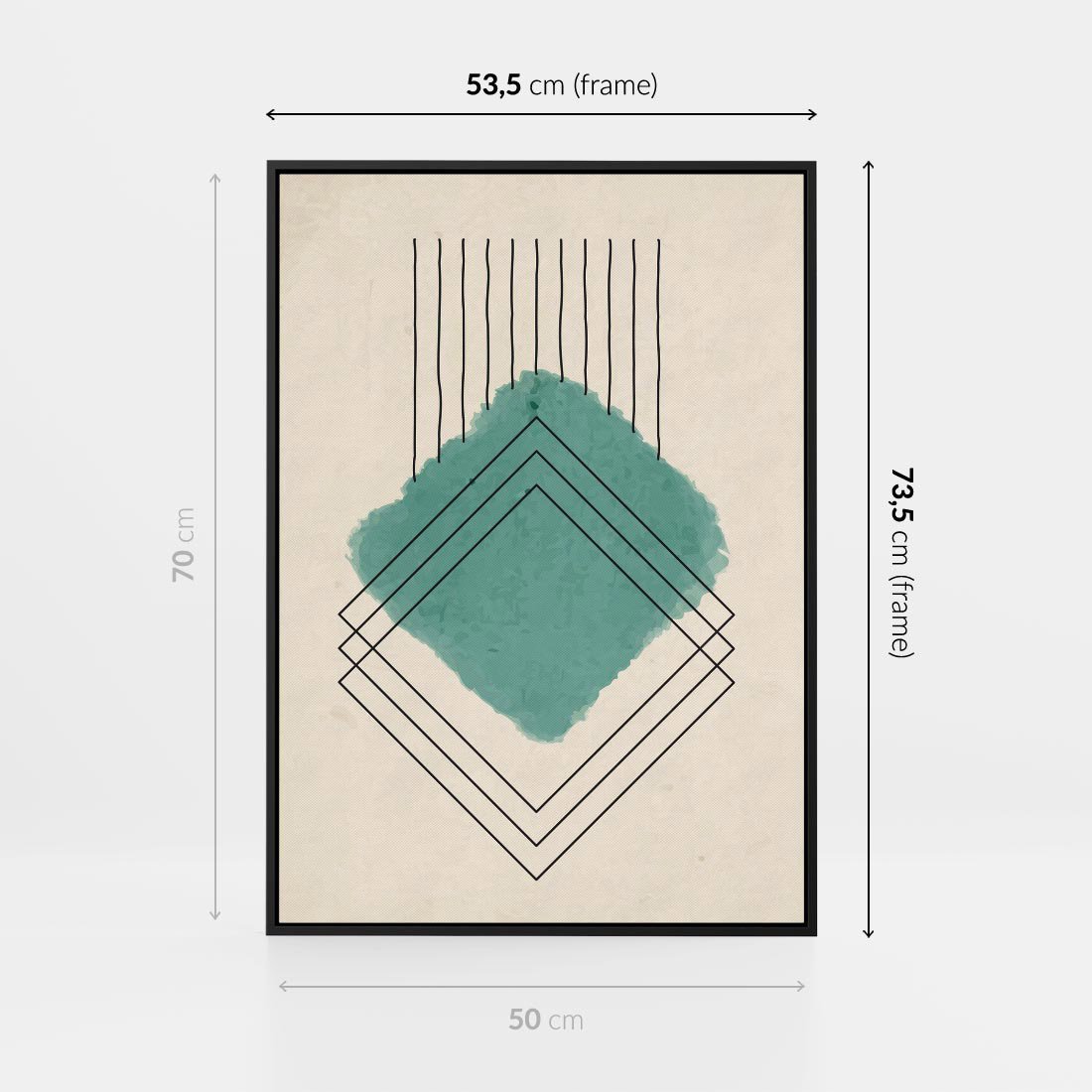 Obraz w ramie 50x70 - Impresje Przestrzeni - akwarelowa plama, geometryczne szkicowane kształty - rama czarna