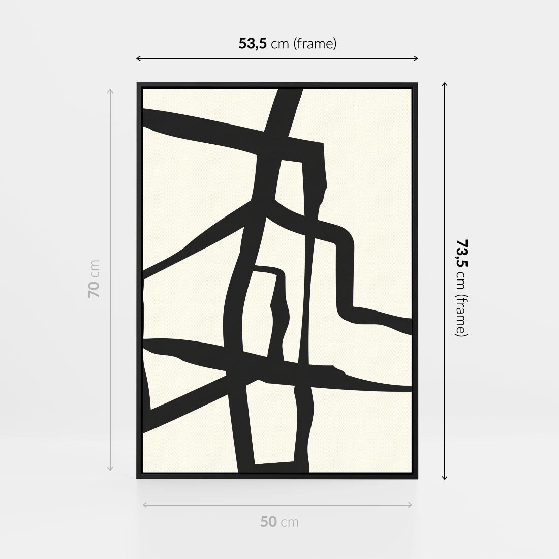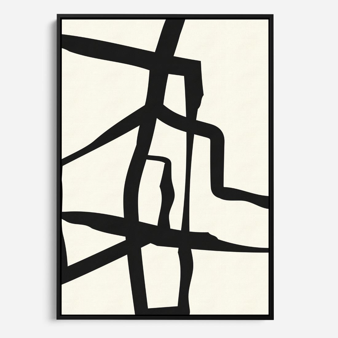 Ten plakat prezentuje minimalistyczną abstrakcję poprzez czarne i białe linie. Sztuka ta wykorzystuje prostotę i minimalizm, tworząc dynamiczną i nowoczesną kompozycję, która pobudza wyobraźnię i zachęca do refleksji nad różnymi interpretacjami, wprowadzając jednocześnie elegancki akcent do Twojej przestrzeni.