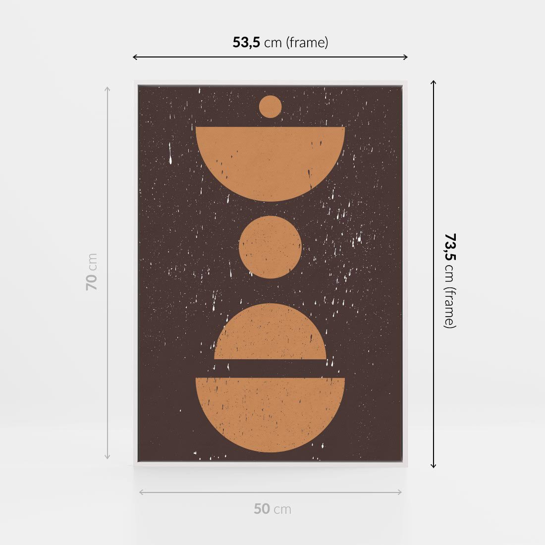 Ożyw swoje wnętrze wyjątkowym urokiem mid century stylu dzięki tej nowoczesnej grafice. Koła i półkola w odcieniach beżu i brązu w minimalistycznym układzie przynoszą subtelny, ale efektowny akcent.