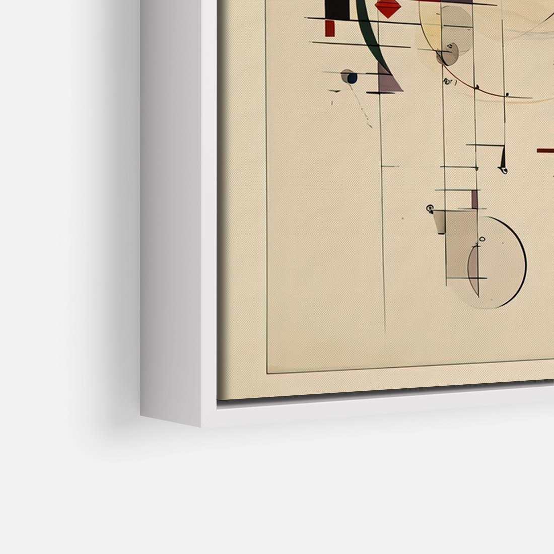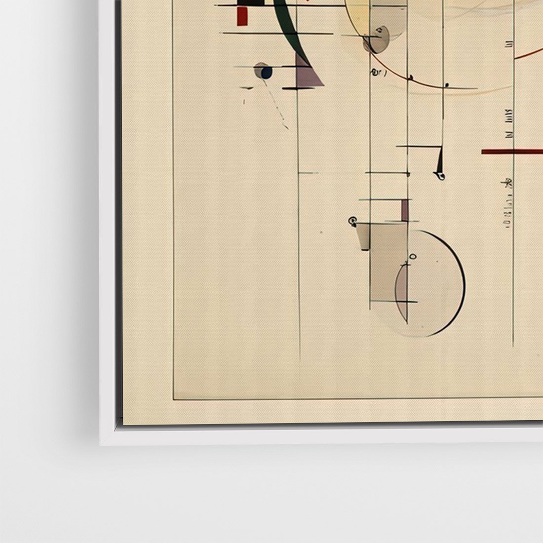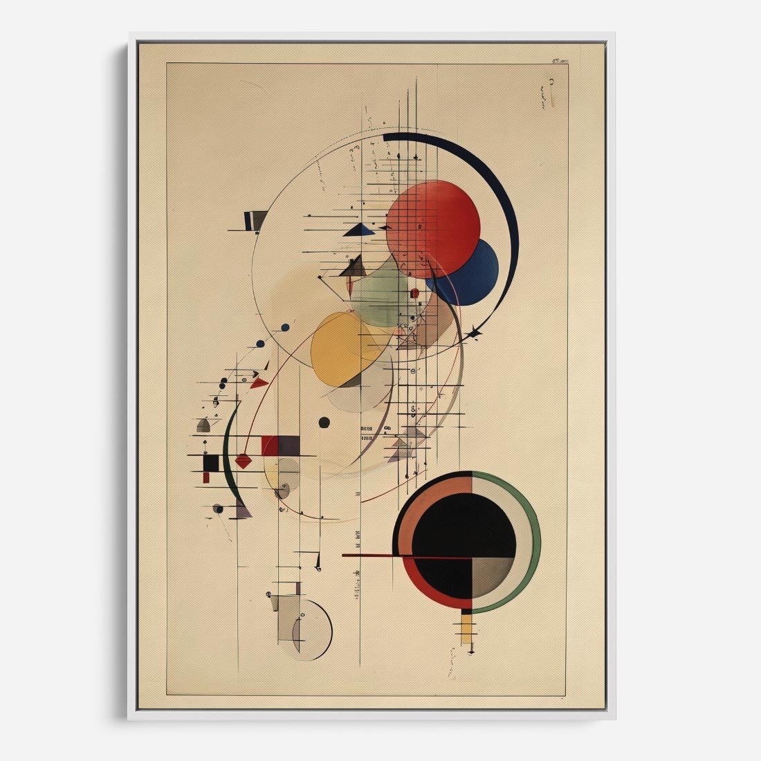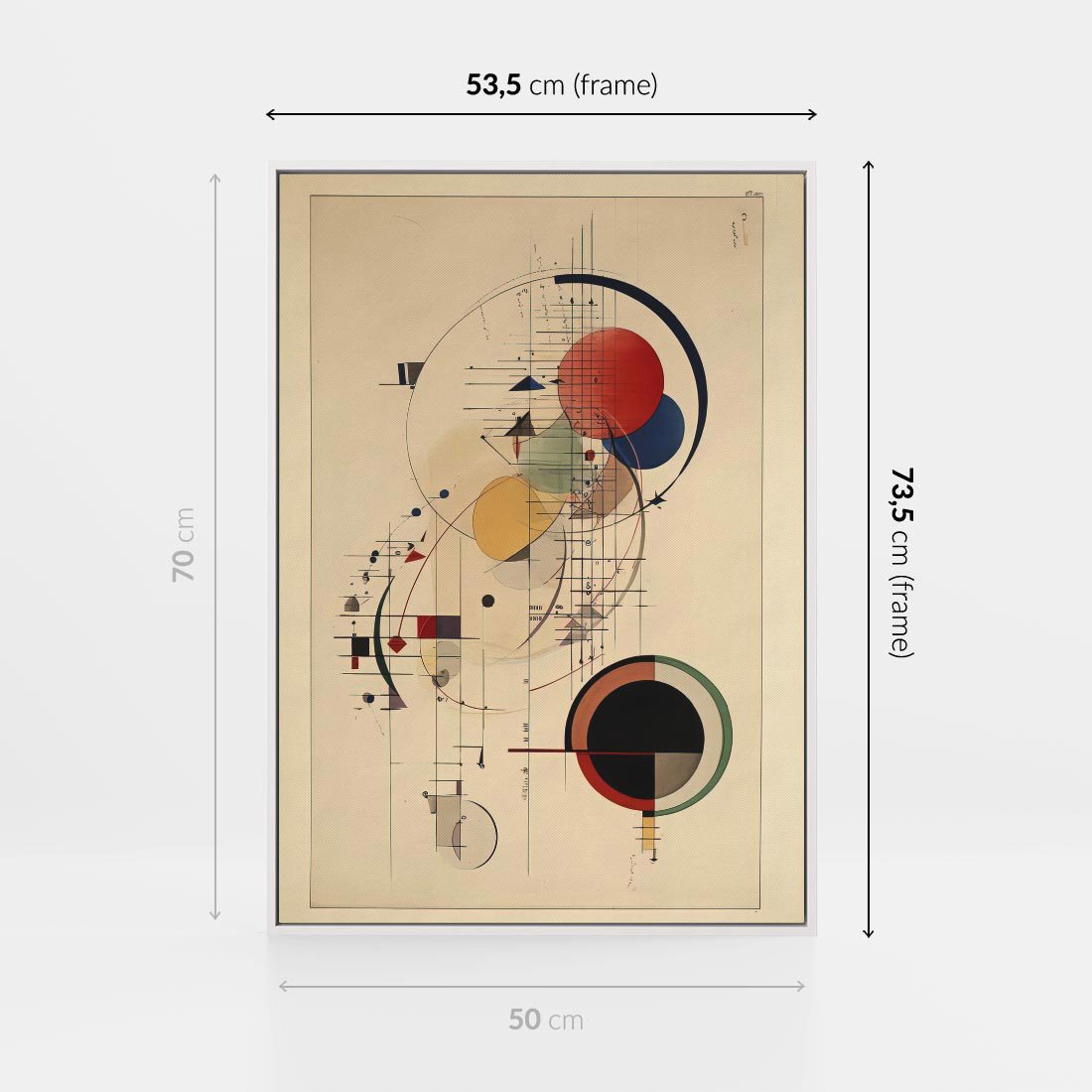 Ta abstrakcyjna geometryczna kompozycja, inspirowana stylem Wassily'ego Kandinsky'ego, używa kół i linii, aby tworzyć dynamiczną harmonię kształtów i kolorów. To wizualne doświadczenie przenosi widza w emocjonalną podróż przez abstrakcyjne światy.