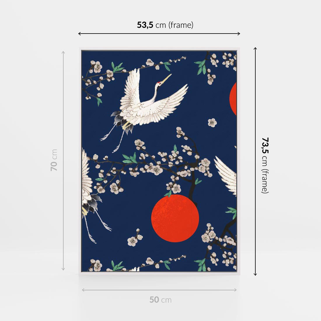 Obraz w ramie 50x70 - Japońskie Żurawie Indygo - sztuka japońska, japonia - rama biała