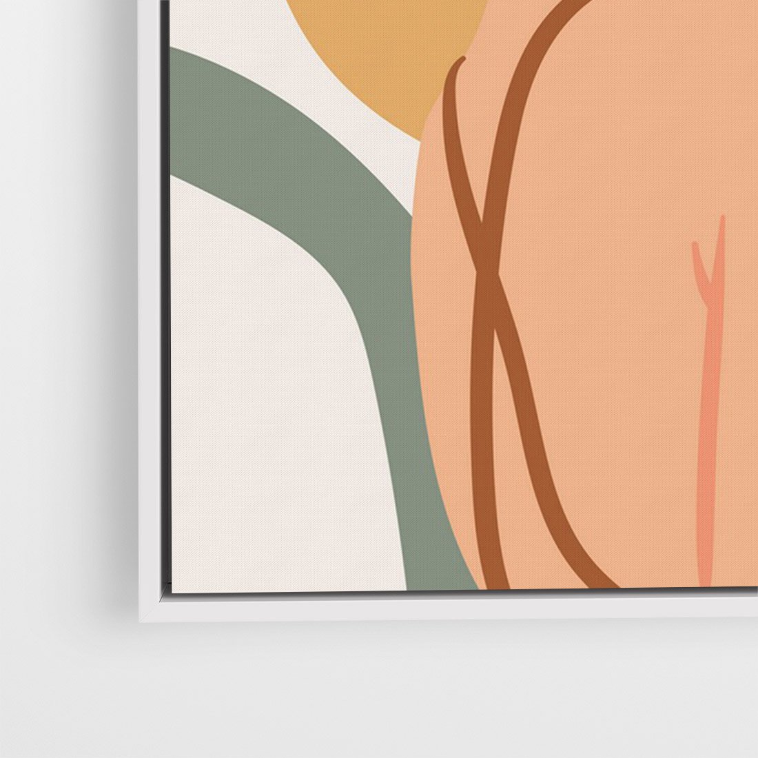 Nowoczesny plakat w stylu retro ukazuje portret kobiety w stonowanych kolorach. To harmonijne połączenie współczesności i nostalgii, tworząc elegancką kompozycję o subtelnej atmosferze.