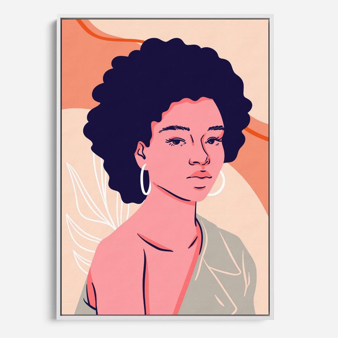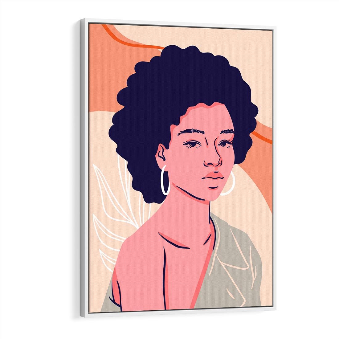 W stylowym plakacie o nowoczesnym wydźwięku retro widnieje portret kobiety w stonowanych kolorach. To połączenie klasycznego charakteru z nowoczesnością, tworzące wyrafinowaną i harmonijną kompozycję.