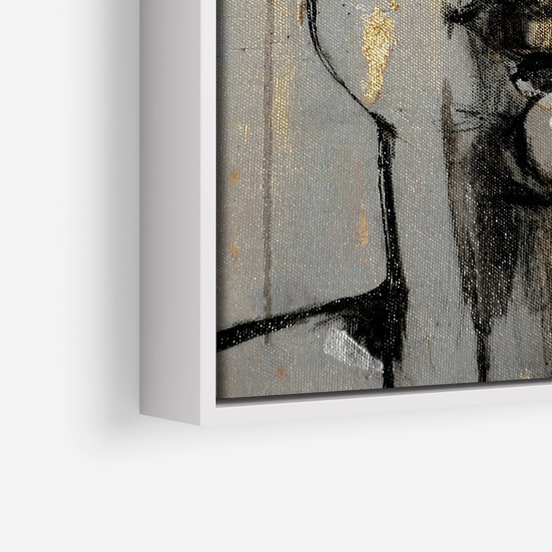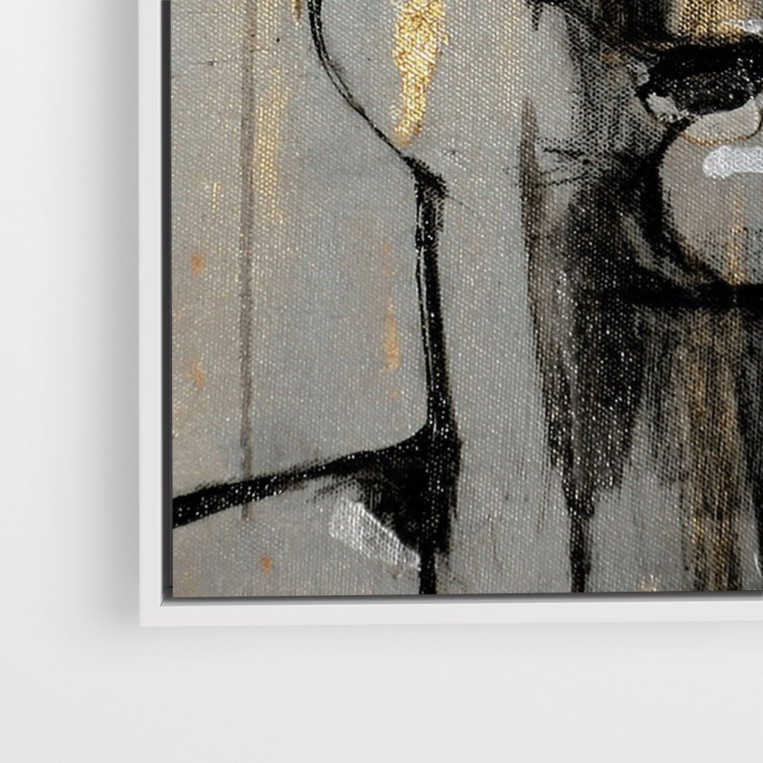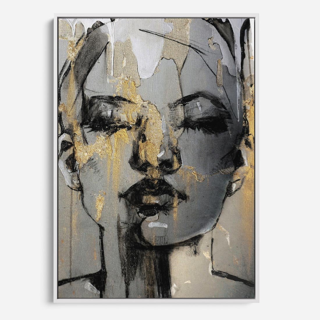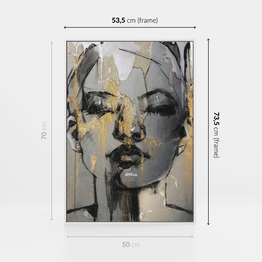 Obraz w ramie 50x70 - Kobieta - Abstrakcyjne Malowidło - złote, usta abstrakcja - rama biała