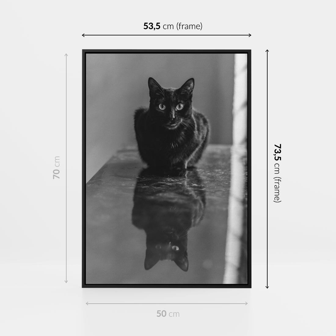 Obraz w ramie 50x70 - Kocie Oczy - kot, czarno białe zdjęcie - rama czarna