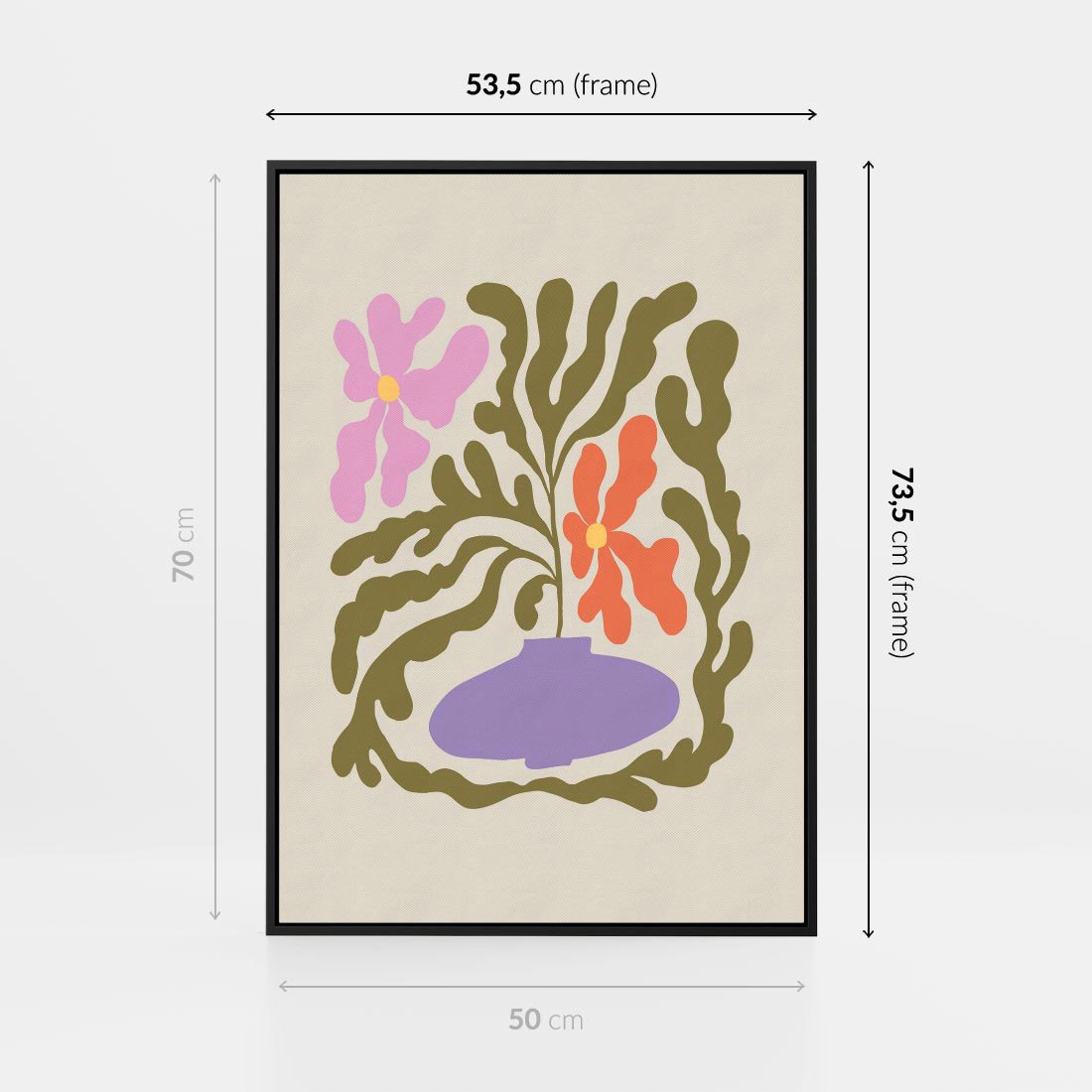 Ten plakat prezentuje abstrakcyjne kwiaty w minimalistycznym stylu, doskonale wpisujące się w boho atmosferę salonu. Sztuka ta łączy delikatność kwiatów z abstrakcyjną formą, tworząc spokojny i równocześnie ekspresyjny obraz, który przynosi do wnętrza wyjątkowy duch boho i dodaje charakteru oraz wyjątkowej harmonii.