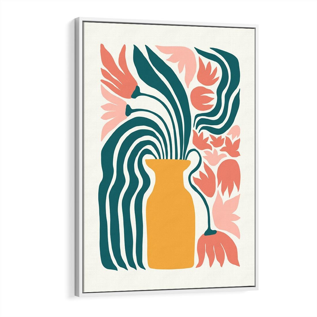 Ten nowoczesny plakat ukazuje abstrakcyjne kwiaty w delikatnych pastelowych odcieniach, tworząc wyjątkową kompozycję w wazonie. Sztuka ta emanuje spokojem i estetyką, zachęcając do odkrywania piękna w prostocie.