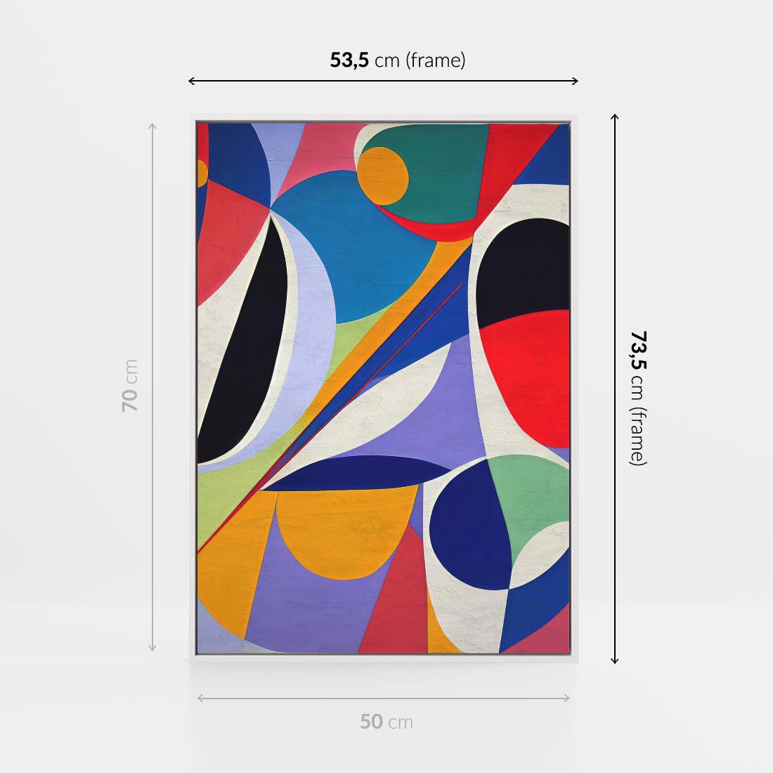 Obraz w ramie 50x70 - Kolorowe Przesunięcia Kształtów - abstrakcyjny obraz olejny, żywe kolory - rama biała
