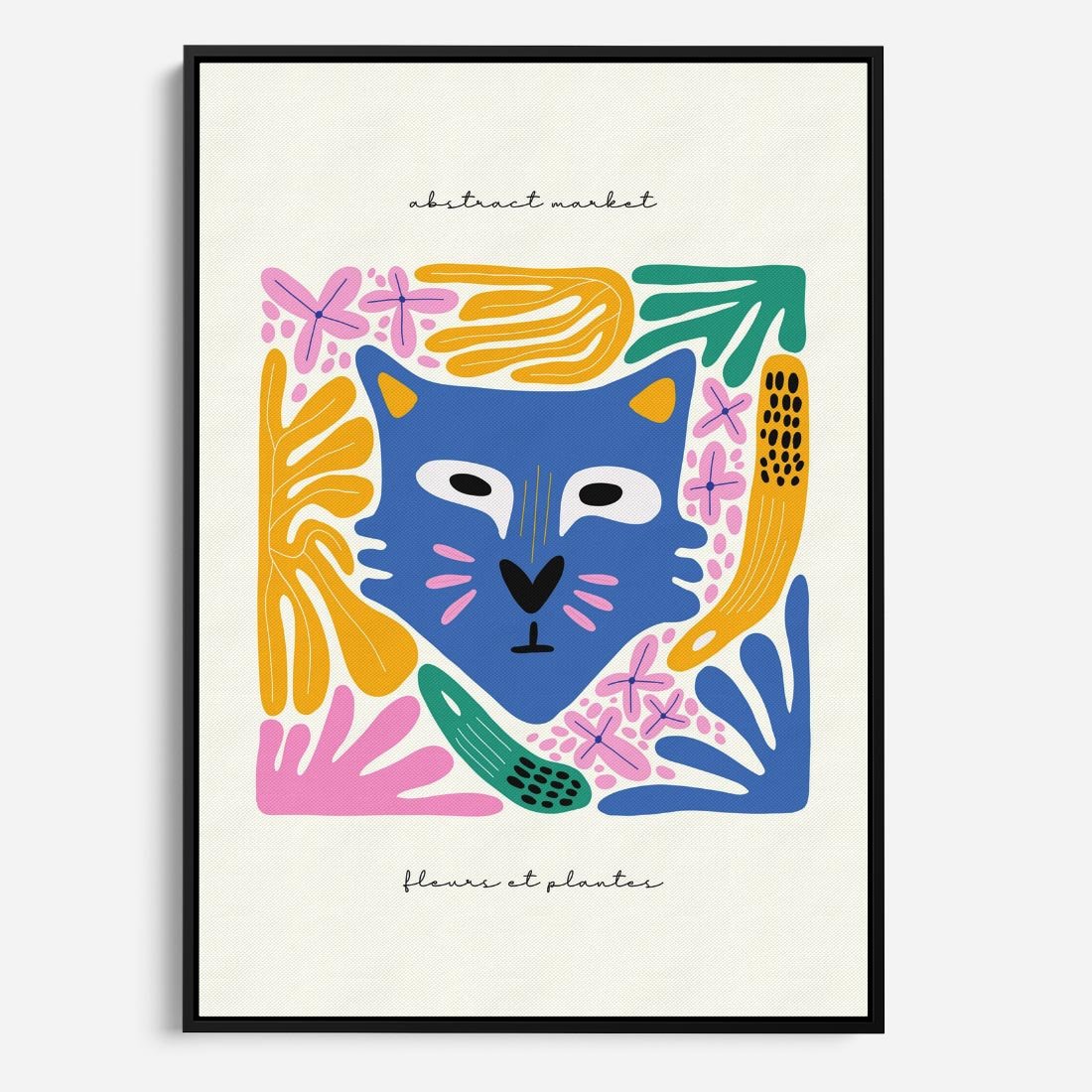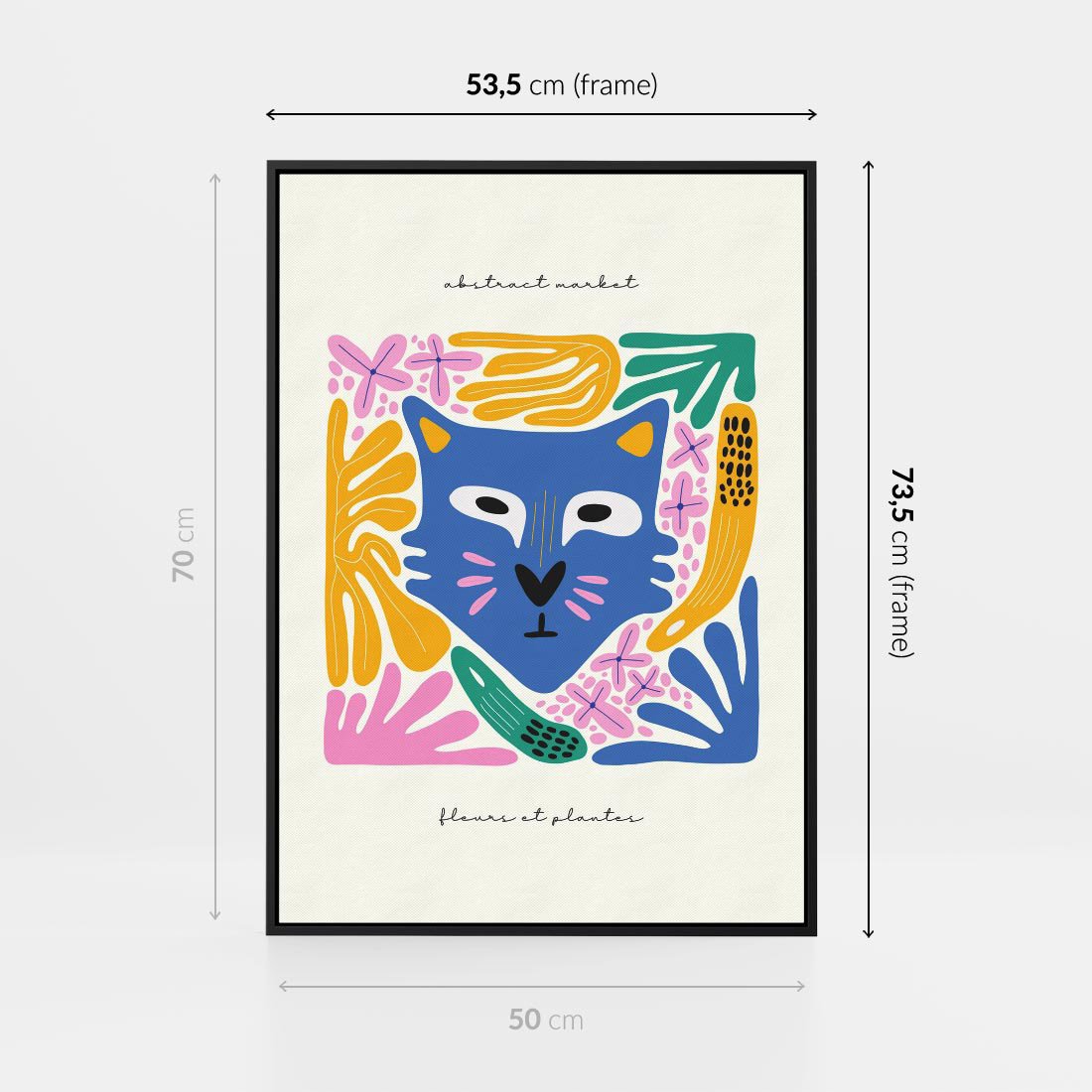 Ten abstrakcyjny plakat przenosi nas w świat eklektycznej sztuki, przedstawiając niebieskiego kota w otoczeniu pastelowych kolorów. Doskonale nadaje się jako ozdoba do salonu, dodając przestrzeni niezwykłego uroku i wyjątkowej atmosfery artystycznego zróżnicowania.