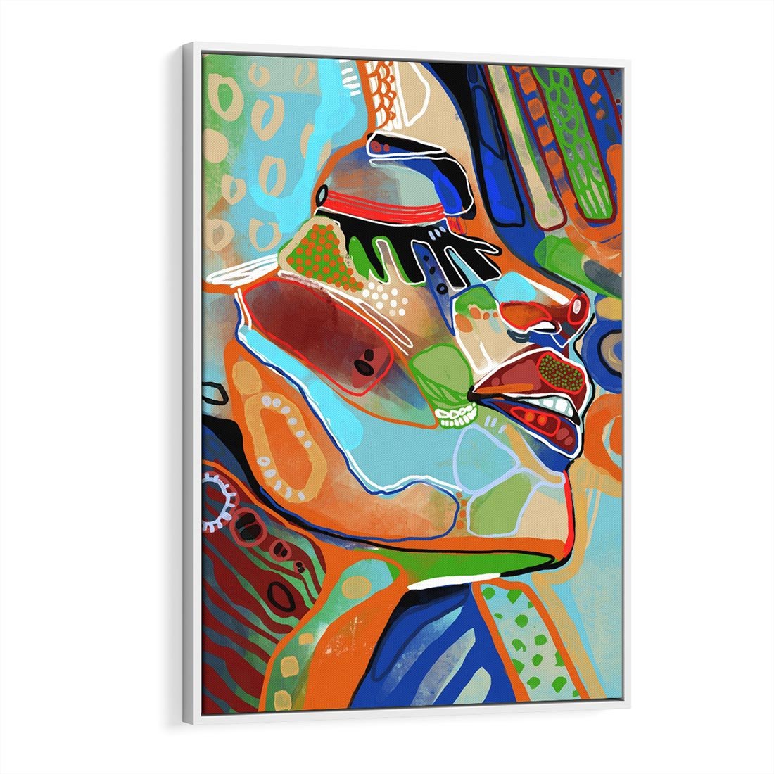 Obraz w ramie 50x70 - Kolorowe Wnętrza Kształtów - abstrakcyjny portret kobiety, twarz - rama biała