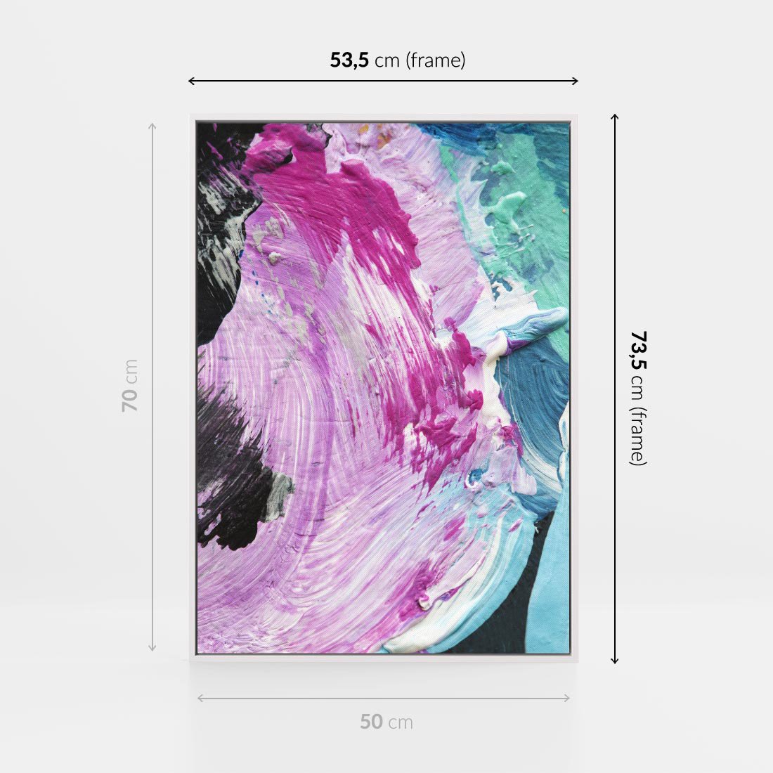 Obraz w ramie 50x70 - Kolorowy rój wyobraźni - rozlane kolorowe farby olejne, abstrakcja - rama biała