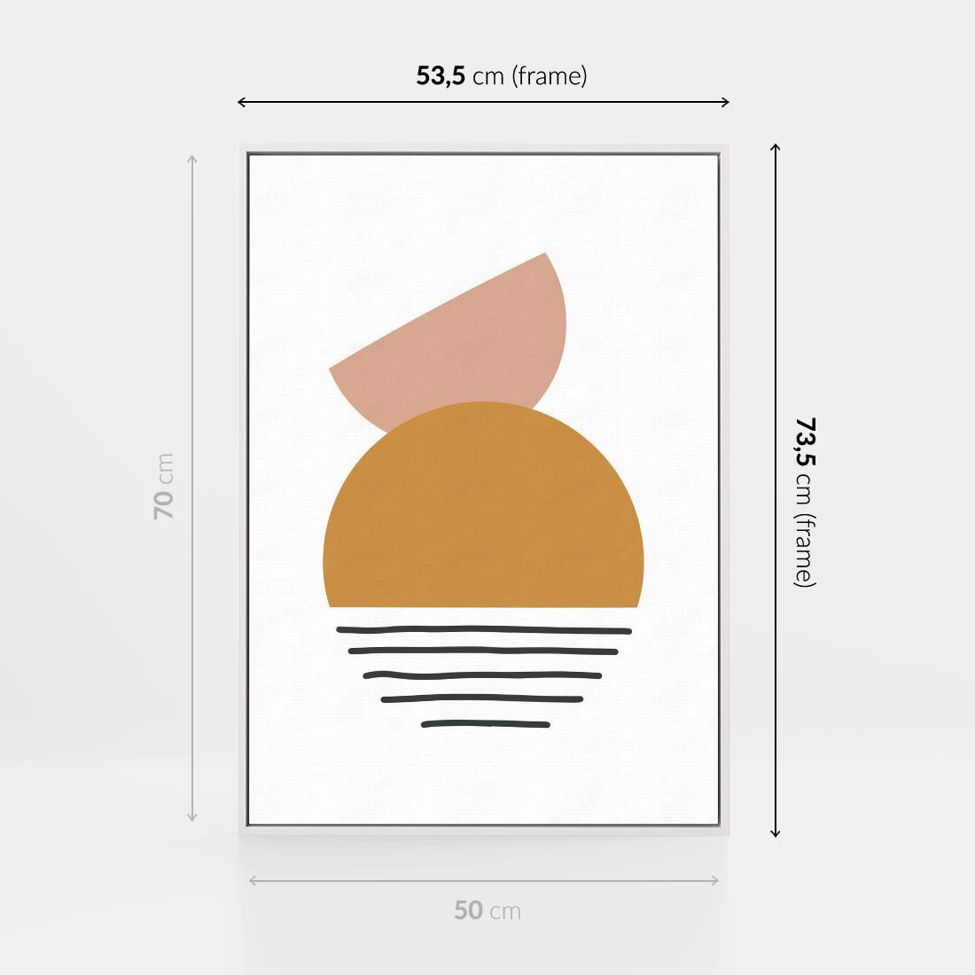 Ta zachwycająca kompozycja kół i kresek w ciepłych odcieniach to hołd dla estetyki mid century. Zmysłowe linie harmonijnie splatają się z geometrycznymi formami, tworząc dynamiczny obraz, który przenosi cię w podróż w czasie do inspirującej epoki sztuki.
