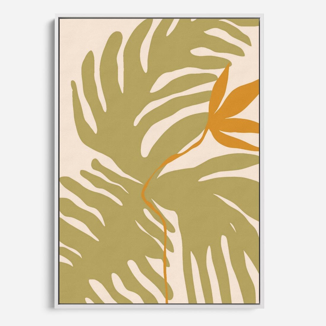 Ten minimalistyczny obraz, nawiązujący do modern art, przedstawia nieregularne kształty w beżowych odcieniach, które przypominają palmy. To artystyczne dzieło wprowadza do Twojej przestrzeni spokój i subtelną egzotyczną atmosferę, jednocześnie zachowując nowoczesny charakter.