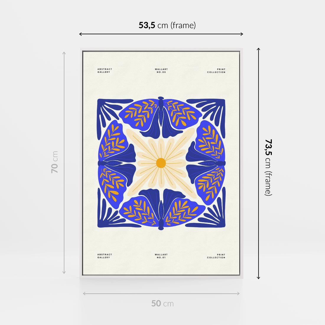 Ten nowoczesny plakat prezentuje abstrakcyjną boho kompozycję, gdzie granatowe ćmy spotykają się z kwiatami. Sztuka ta przenosi nas w magiczny świat natury, łącząc abstrakcję z elementami boho w oryginalny i inspirujący sposób.
