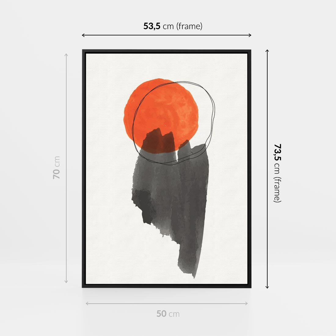 Zainspirowane nowoczesnym minimalizmem, ten obraz zawiera abstrakcyjne, nieregularne plamy w odcieniach czerni, szarości i pomarańczu. Wyjątkowa kompozycja dodaje głębi i wyrazistości.
