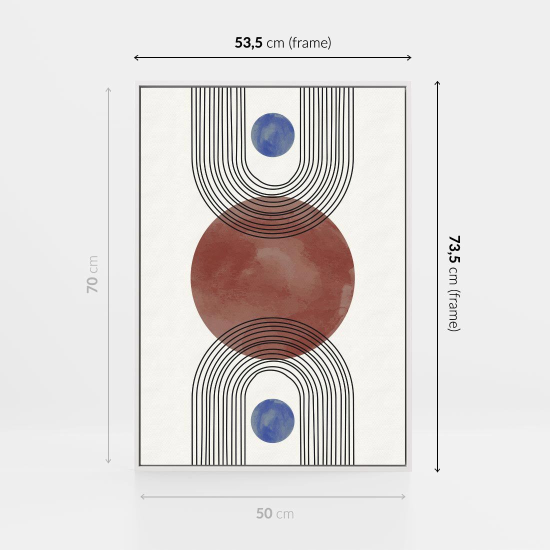 Ten elegancki plakat w stylu midcentury charakteryzuje się geometrycznymi formami, precyzyjnymi liniami i minimalistycznym szkicem. Idealnie wpisuje się w nowoczesne wnętrza, dodając im wyrafinowanego uroku.
