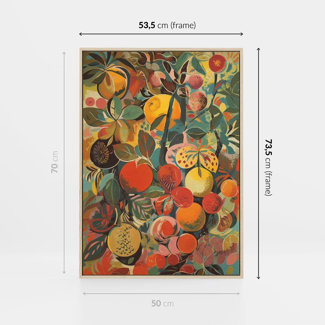Obraz w ramie 50x70 - Księga Surrealnych Wyobrażeń - abstrakcyjny obraz owoców, jak picasso - rama drewno