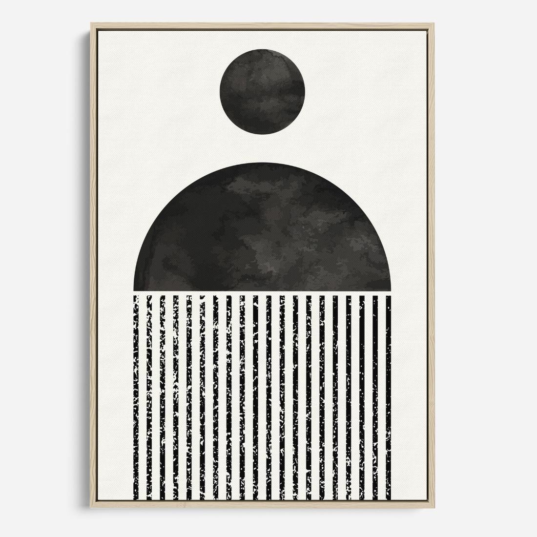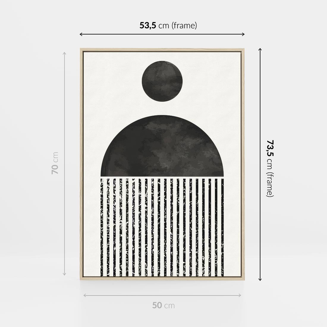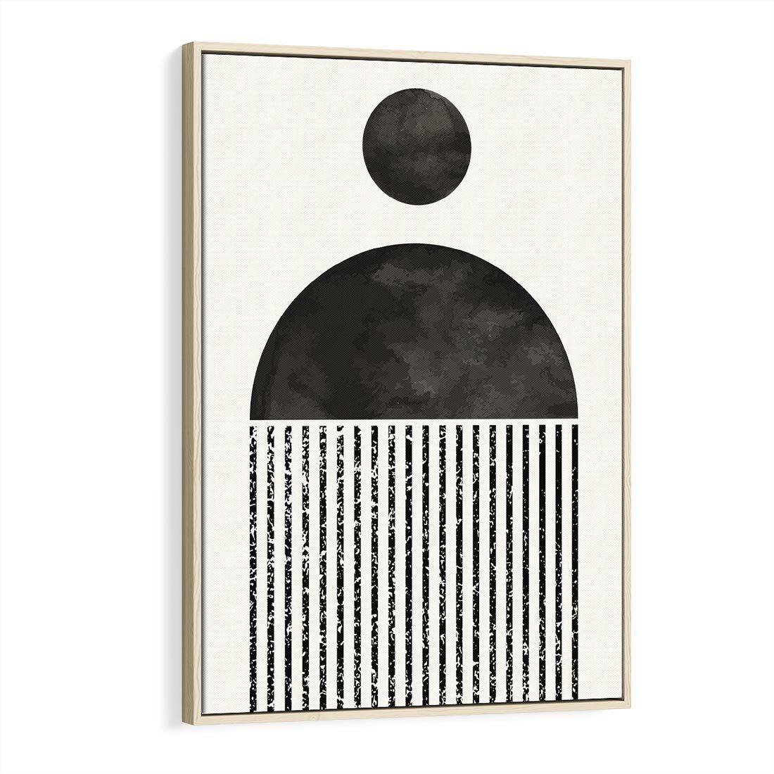 Ta abstrakcyjna kompozycja oczaruje Cię swoją minimalistyczną geometrią. Czarne i białe formy tworzą nowoczesny obraz, który idealnie wpasuje się w każde wnętrze.