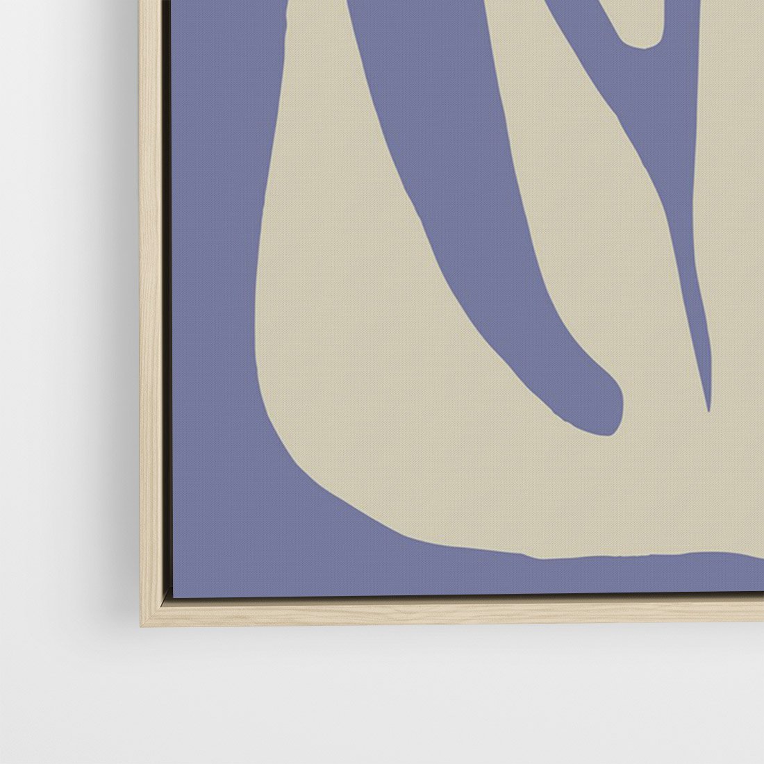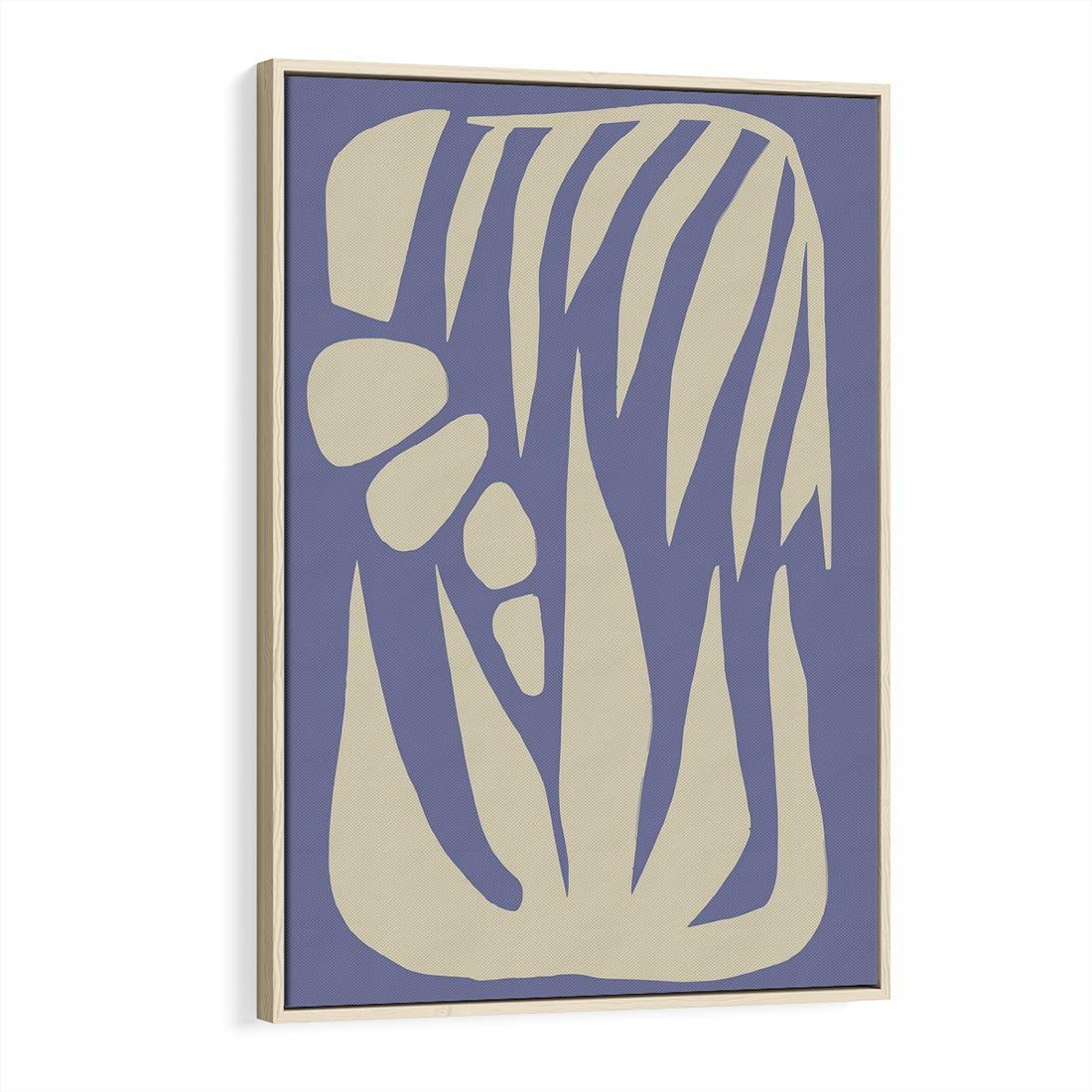 Abstrakcyjna sztuka w skandynawskim stylu, emanująca chabrowym kolorem, łączy prostotę i wyrazistość, tworząc harmonijną atmosferę.