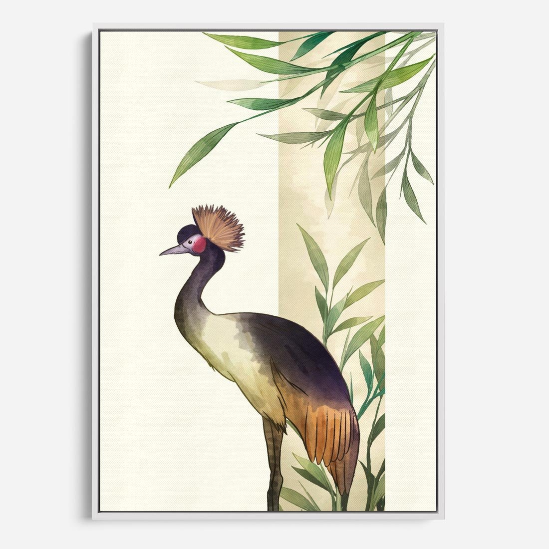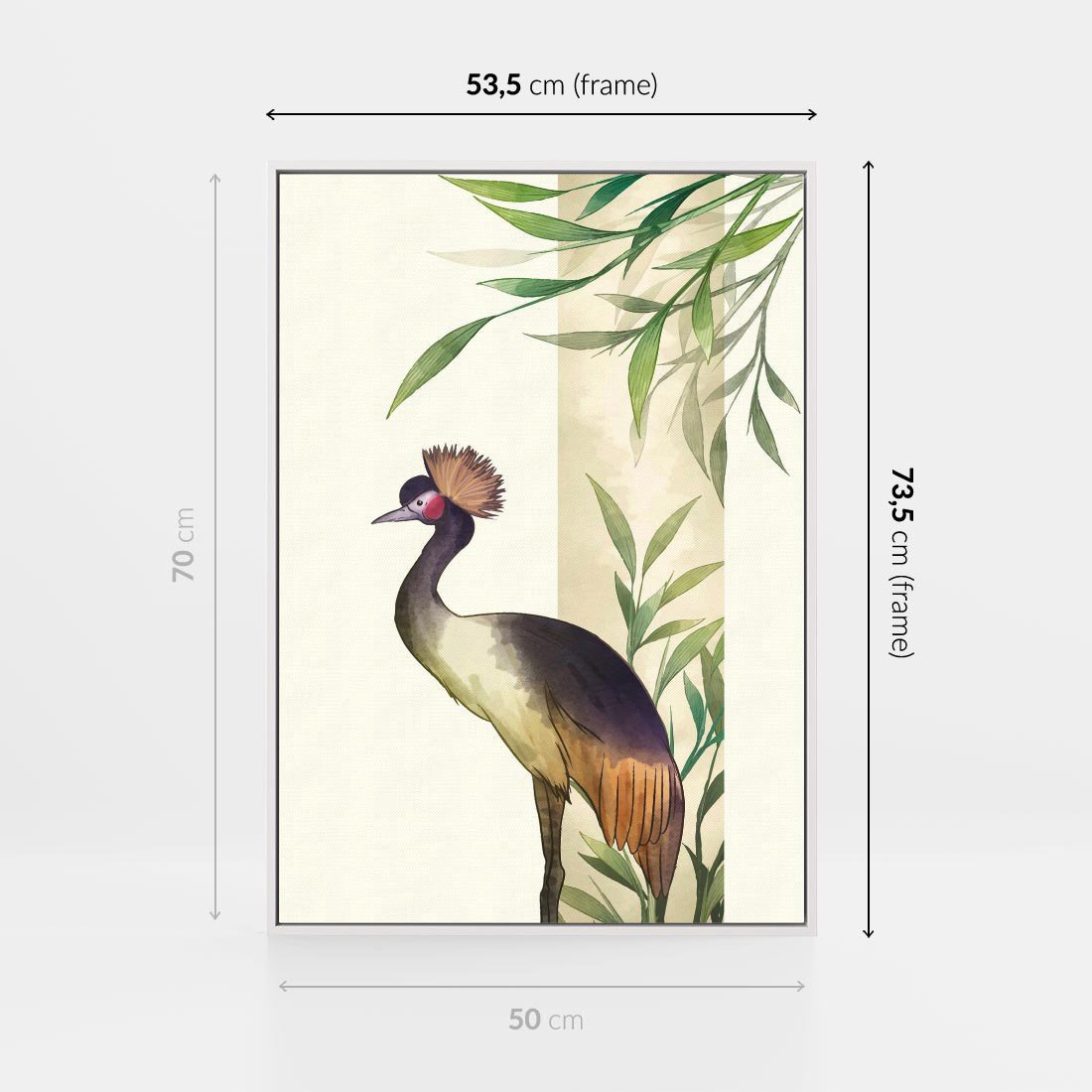 Obraz w ramie 50x70 - Kwiatowa Ekspresja - japońska sztuka, ptak - rama biała