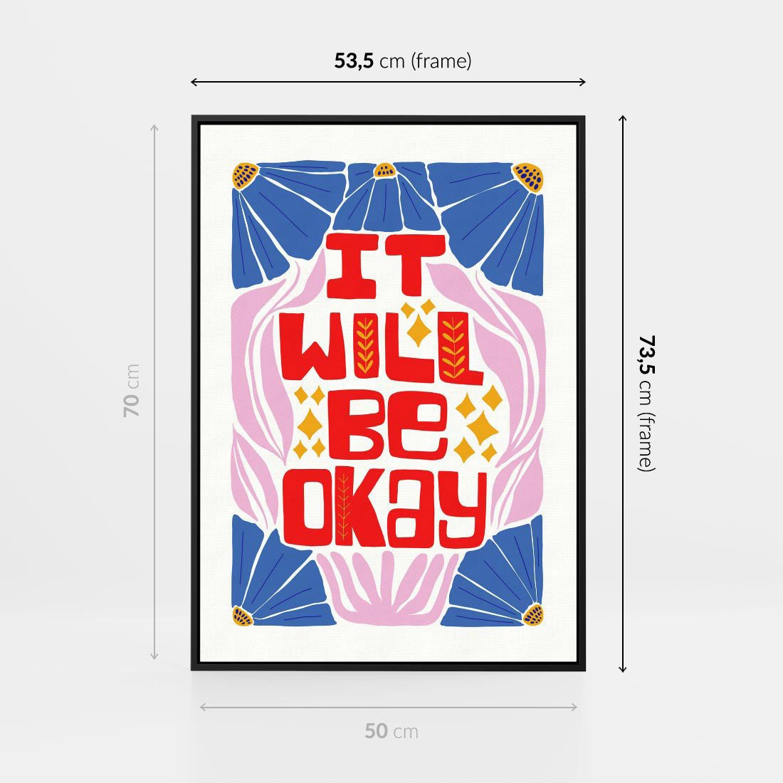 Obraz w ramie 50x70 - Kwiatowa Ekstaza - czerwona pozytywna typografia, kwiatowa kompozycja - rama czarna