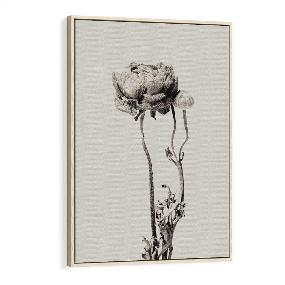 Obraz w ramie 50x70 - Kwiatowa Symfonia w Szarościach - czarno biała odbitka, jak fotografia - rama drewno
