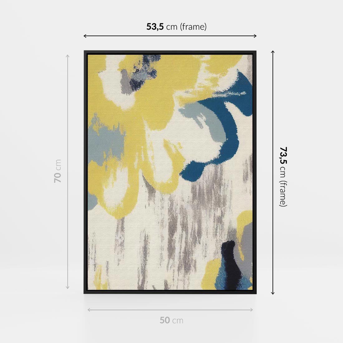 Zachwycający obraz z malowanymi dużymi kwiatami w kolorach żółtym, niebieskim i szarym. Abstrakcyjne kompozycje wprowadzą harmonię natury do Twojego wnętrza.