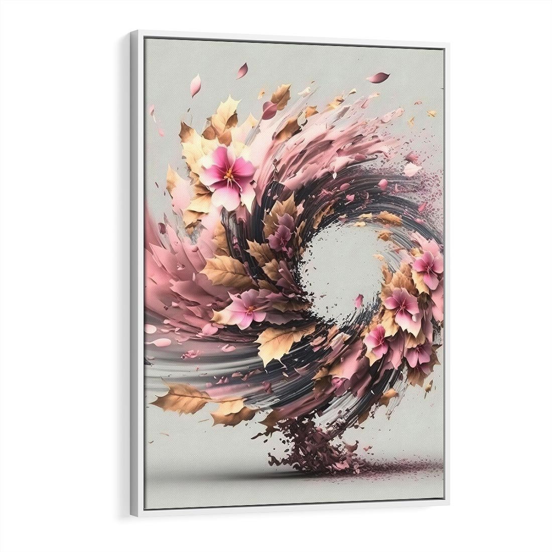 Obraz w ramie 50x70 - Kwiatowy Wir - nowoczesna grafika komputerowa, wir z kwiatów - rama biała