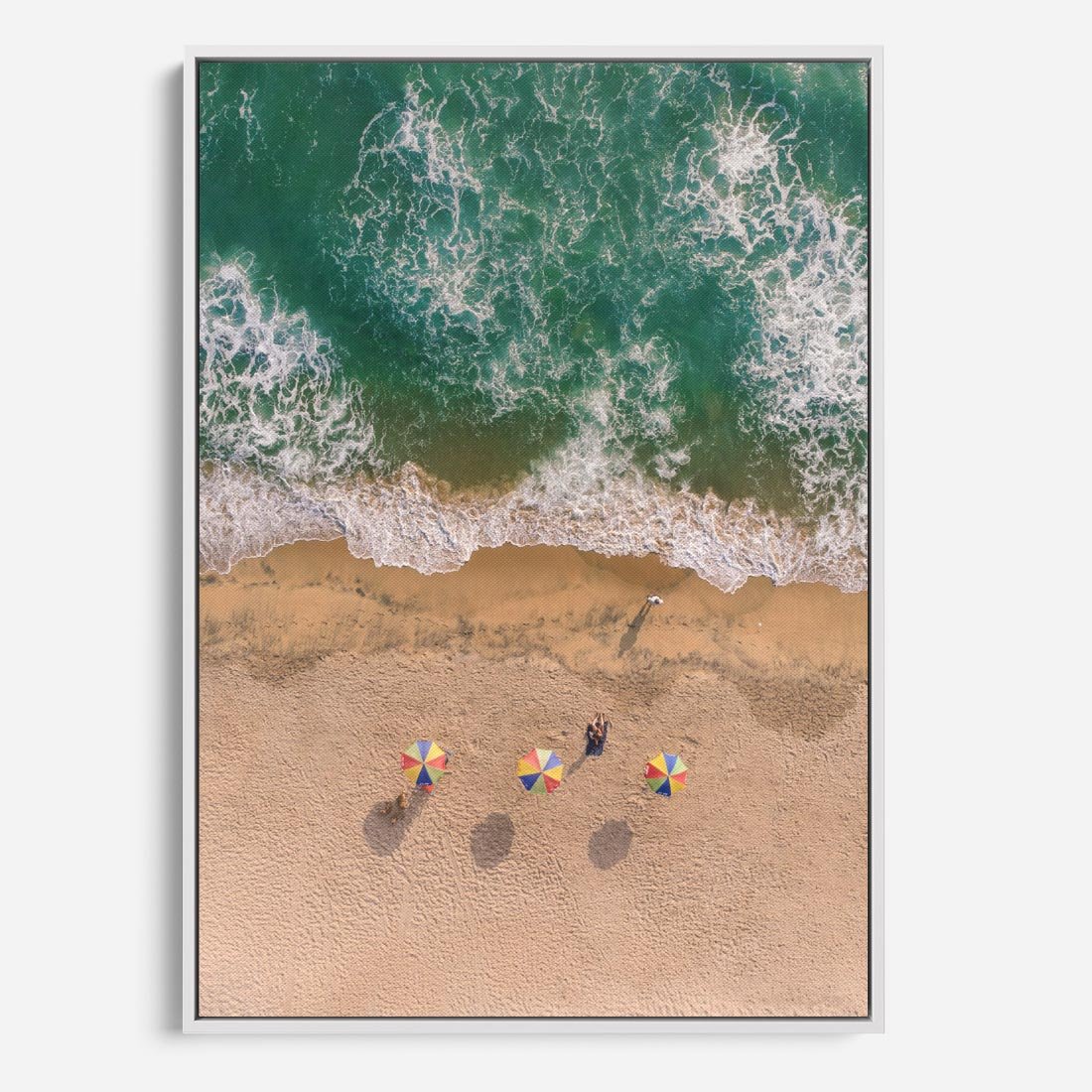 Poczuj atmosferę letnich wakacji za pomocą obrazu przedstawiającego plażę z morzem i parasolami. Przenieś się na piękne plaże i dodaj do swojego wnętrza wakacyjny nastrój.