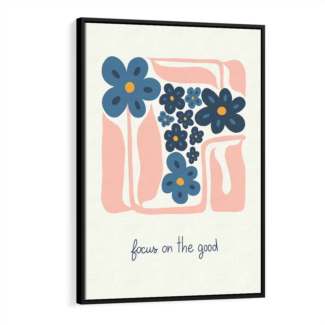 Ta minimalistyczna kwiatowa kompozycja w pastelowych kolorach tworzy spokojną i pozytywną afirmację. To harmonijne połączenie prostoty formy roślinnej z inspirującą typografią. Ten obraz wprowadzi subtelny akcent natury i pozytywnego myślenia do wnętrza, zachowując jednocześnie estetykę minimalistycznego piękna.