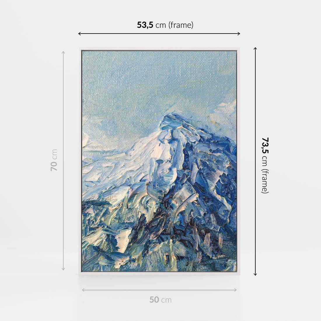 Obraz w ramie 50x70 - Majestat Błękitnych Szczytów - olejny obraz, górski pejzaż - rama biała