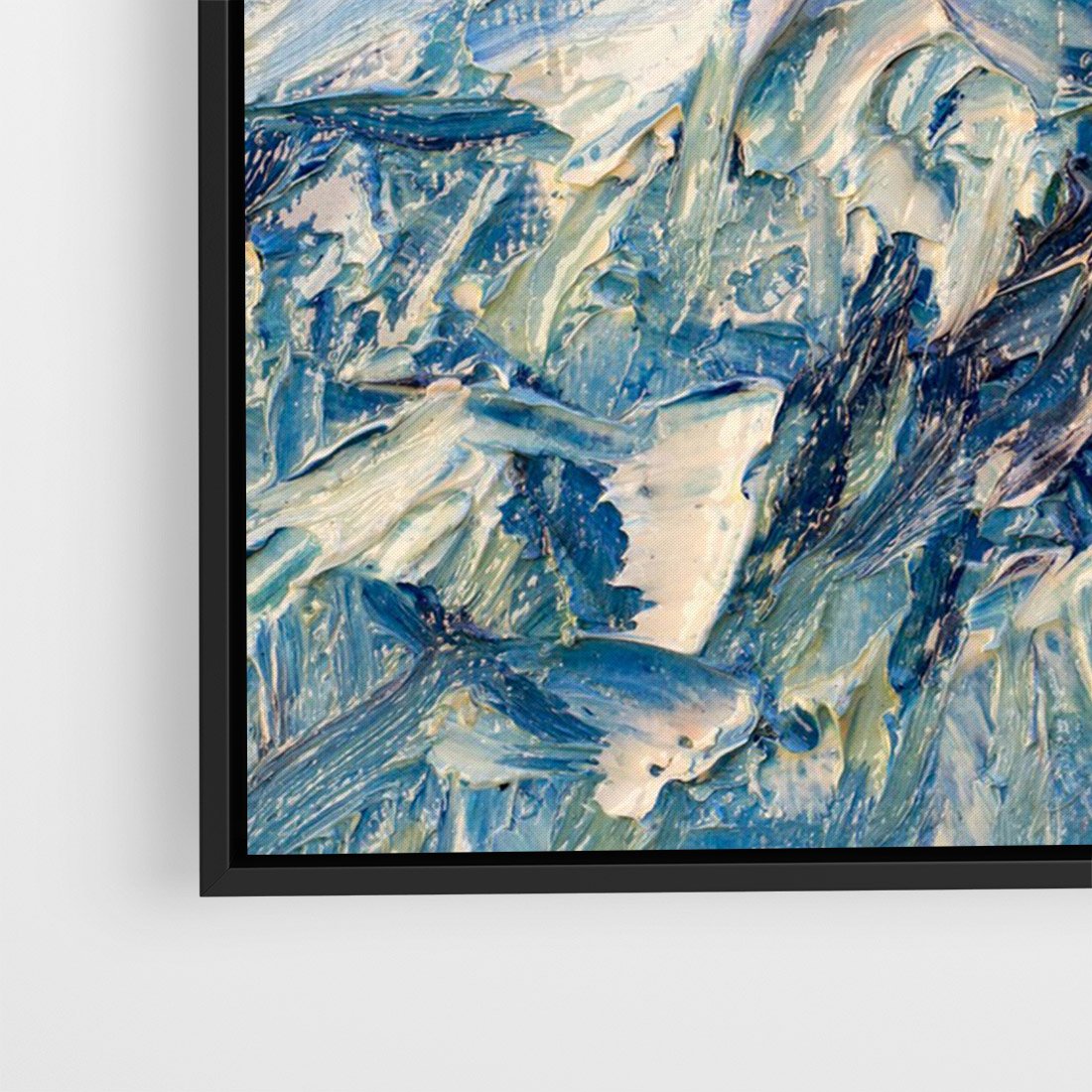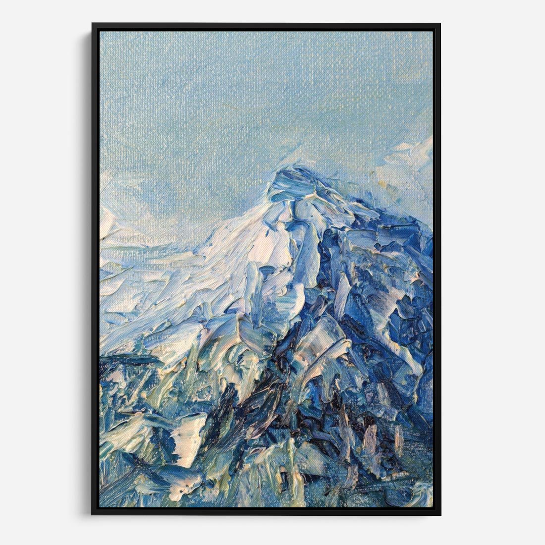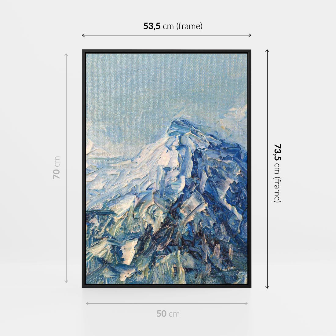 Obraz w ramie 50x70 - Majestat Błękitnych Szczytów - olejny obraz, górski pejzaż - rama czarna