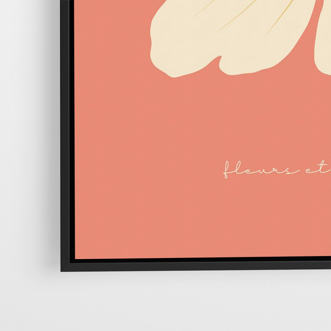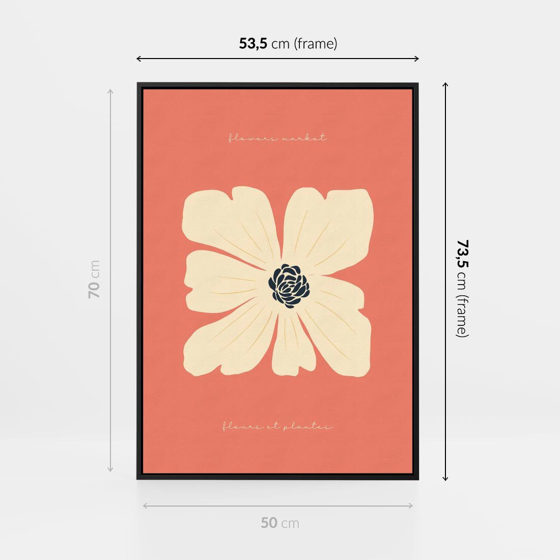 Obraz w ramie 50x70 - Malowane Kolorowe Echa - minimalistyczna grafika, biały kwiat na różowym tle - rama czarna