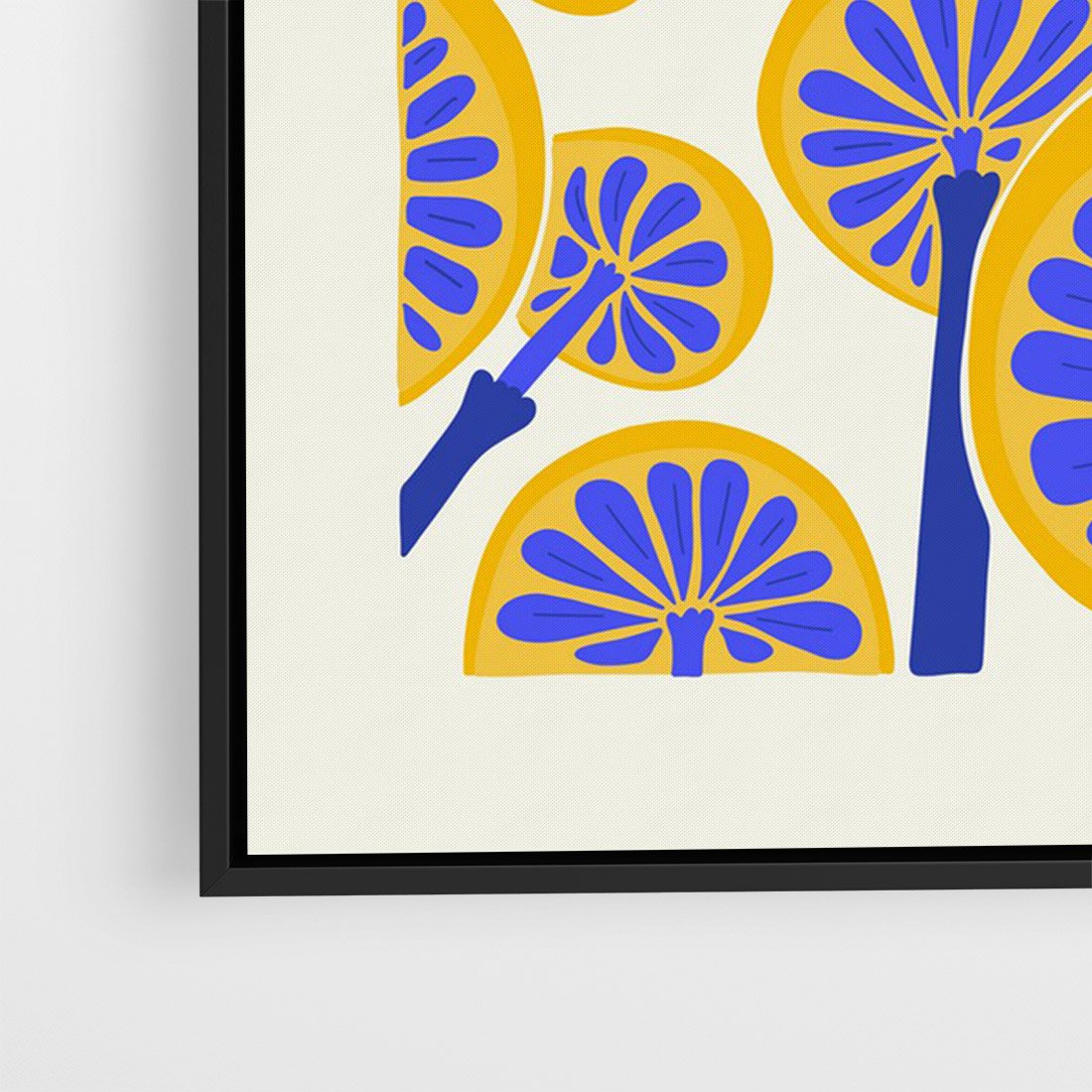 Przenieś się w świat kreatywnej ekspresji z tą niezwykłą sztuką. Żółto-niebieska paleta podkreśla abstrakcyjne detale grzybów, tworząc unikalną kompozycję, która ożywi każde wnętrze.