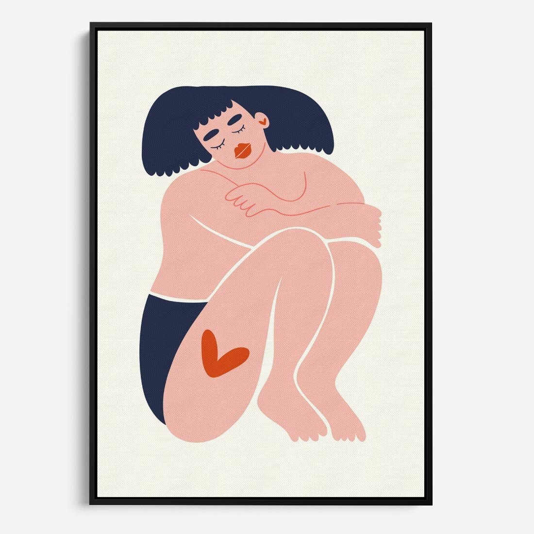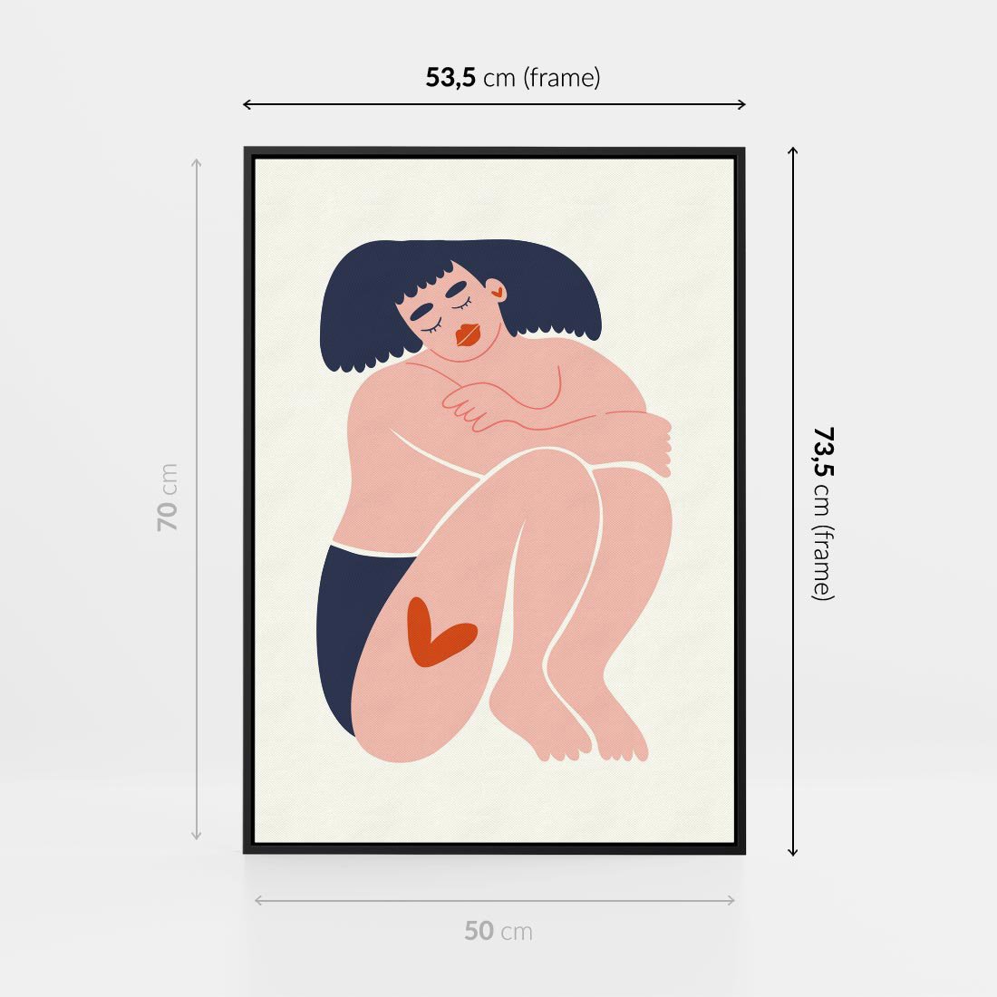 Obraz w ramie 50x70 - Melodia snów na płótnie - zakochana kobieta, graficzny obraz - rama czarna