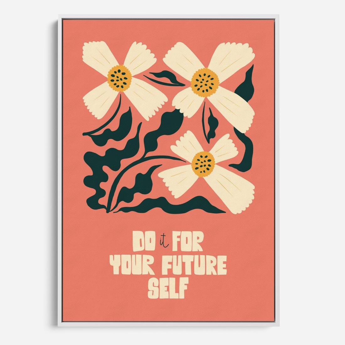 Ten nowoczesny plakat przenosi nas w styl retro, prezentując białe stokrotki na delikatnym różowym tle. Kompozycja łączy w sobie klasykę i nowoczesność, tworząc wyjątkową harmonię wzorów i kolorów.