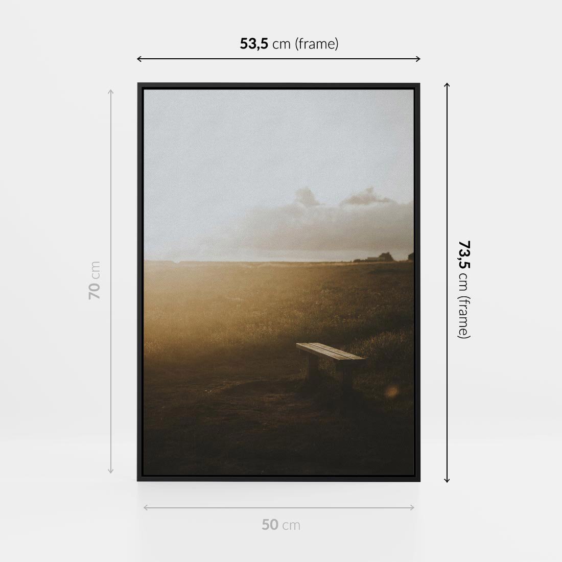 - Obraz w ramie 50x70 - Mglisty zachód słońca na ławeczce