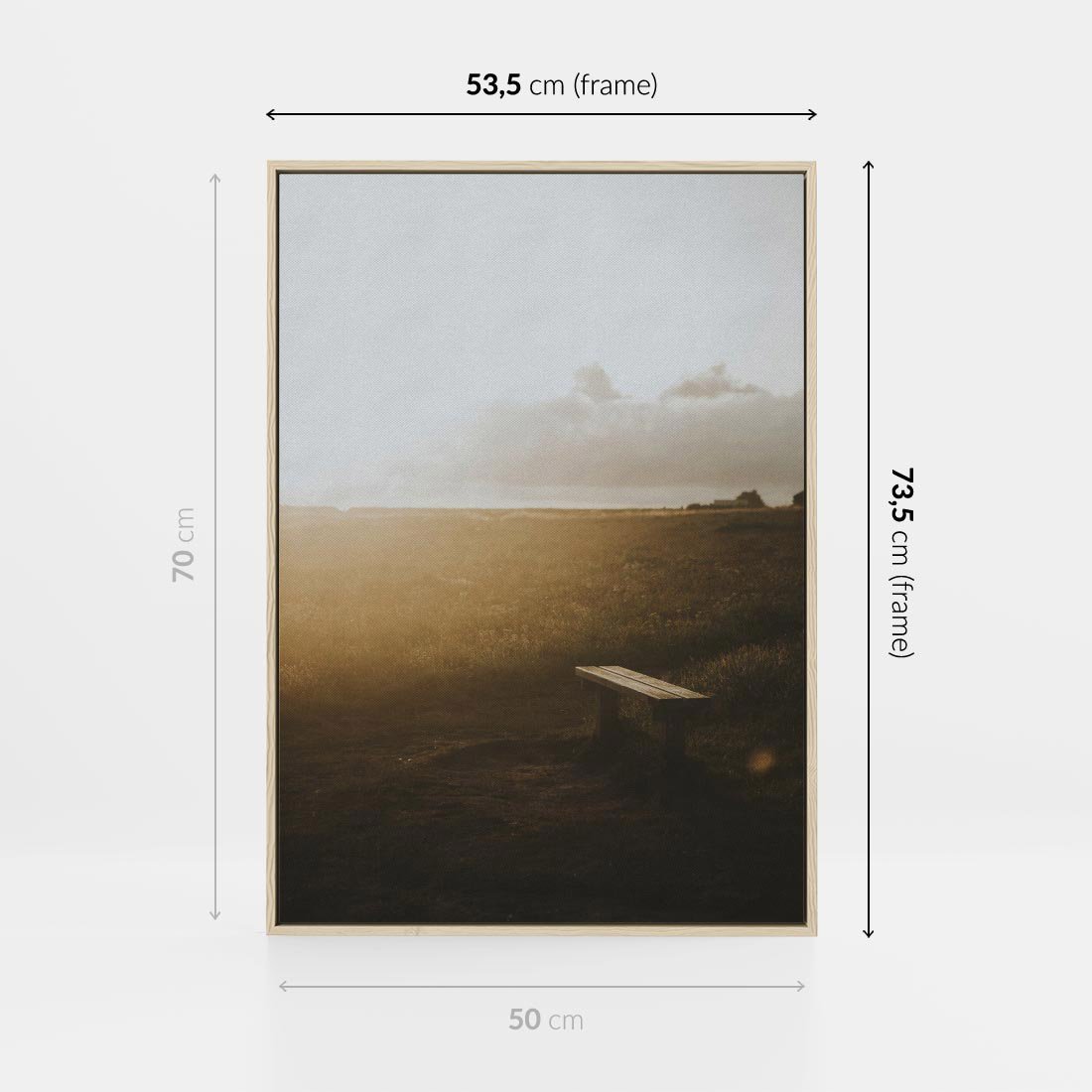 - Obraz w ramie 50x70 - Mglisty zachód słońca na ławeczce