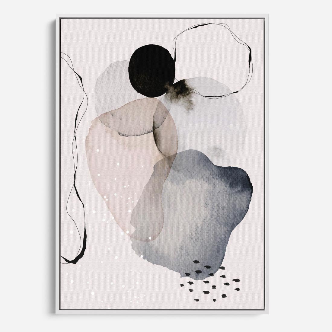 Obraz w ramie 50x70 - Migocące Barwy - abstrakcyjne plamy akwarelowe, czarny szkic - rama biała
