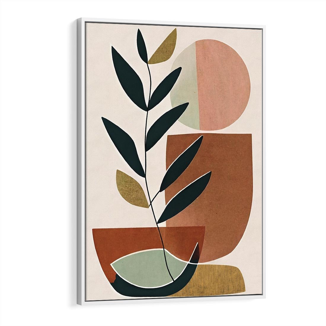 Ten boho obraz zachwyca abstrakcyjną interpretacją natury. Wyraziste kształty liści i roślin tworzą harmonijną kompozycję, podkreślając piękno natury. Centralnym punktem jest stylizowane słońce, które emanuje ciepłem i pozytywną energią. To dzieło sztuki wplata naturę w abstrakcyjny kontekst, tworząc unikalny i urzekający efekt wizualny.