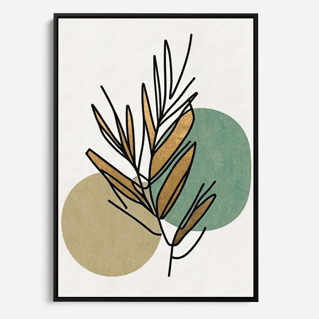 Ten abstrakcyjny obraz w stylu boho to prawdziwa oda naturze. Liście układają się w harmonijne kompozycje, tworząc dynamiczne formy i krzywe. Złote elementy dodają blasku i elegancji, a złote liście subtelnie podkreślają przywiązanie do natury i bogactwa. To artystyczne dzieło wypełni przestrzeń pięknem i energią natury, tworząc wyjątkową atmosferę w każdym wnętrzu.