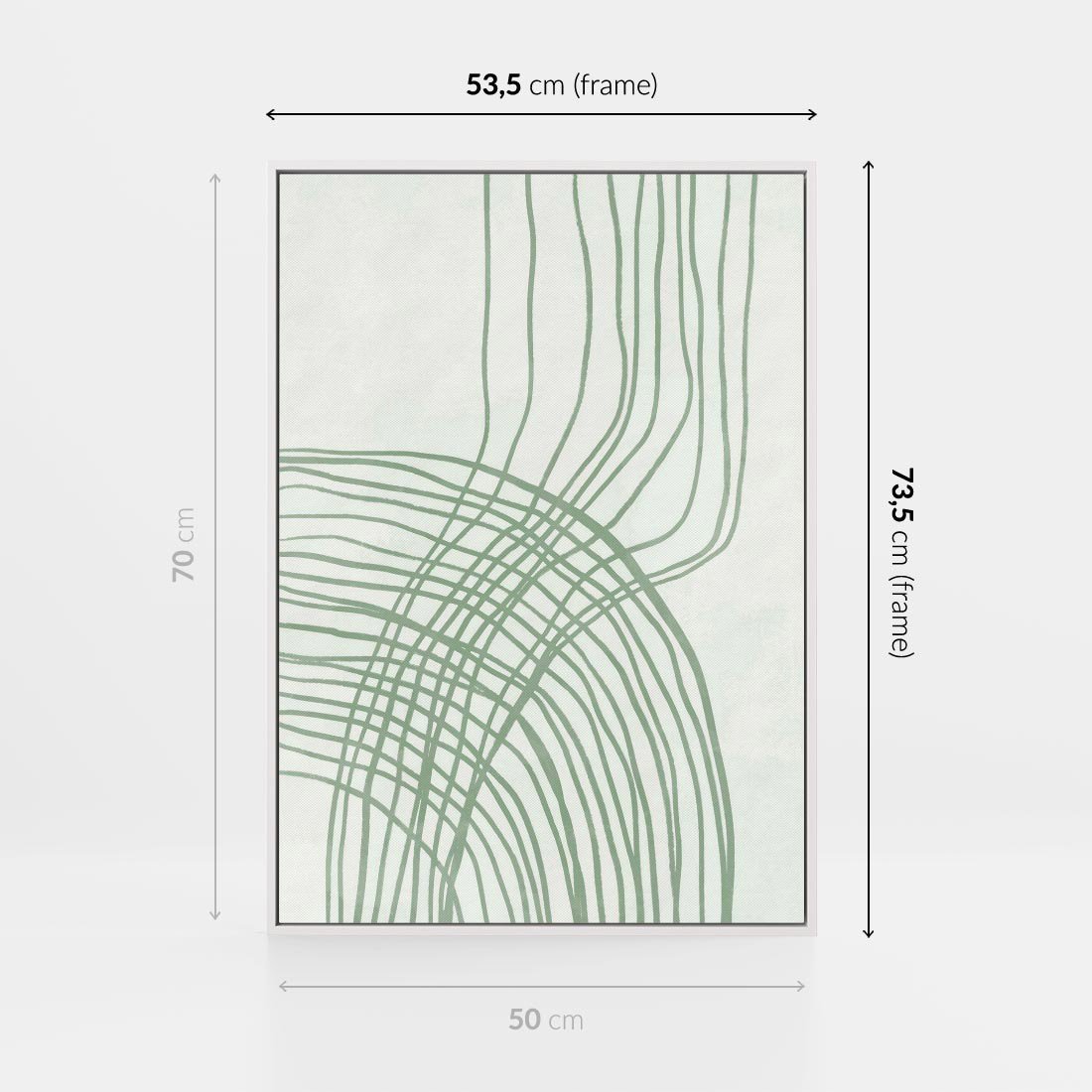Obraz w ramie 50x70 - Migotliwa Spokojna Zieleń - zielony plakat, abstrakcyjne splątane linie - rama biała
