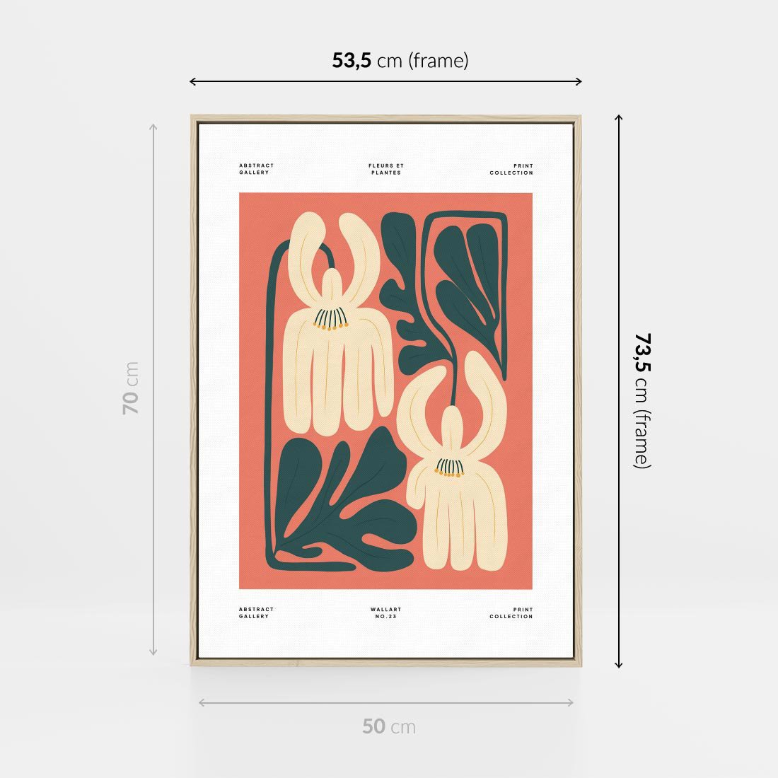 Ten plakat w nowoczesnej abstrakcji ukazuje delikatność kwiatów, wzbogaconą subtelna typografią. Kompozycja emanuje pięknem i wyrafinowanym stylem, tworząc wyjątkową przestrzeń estetycznych doznań.