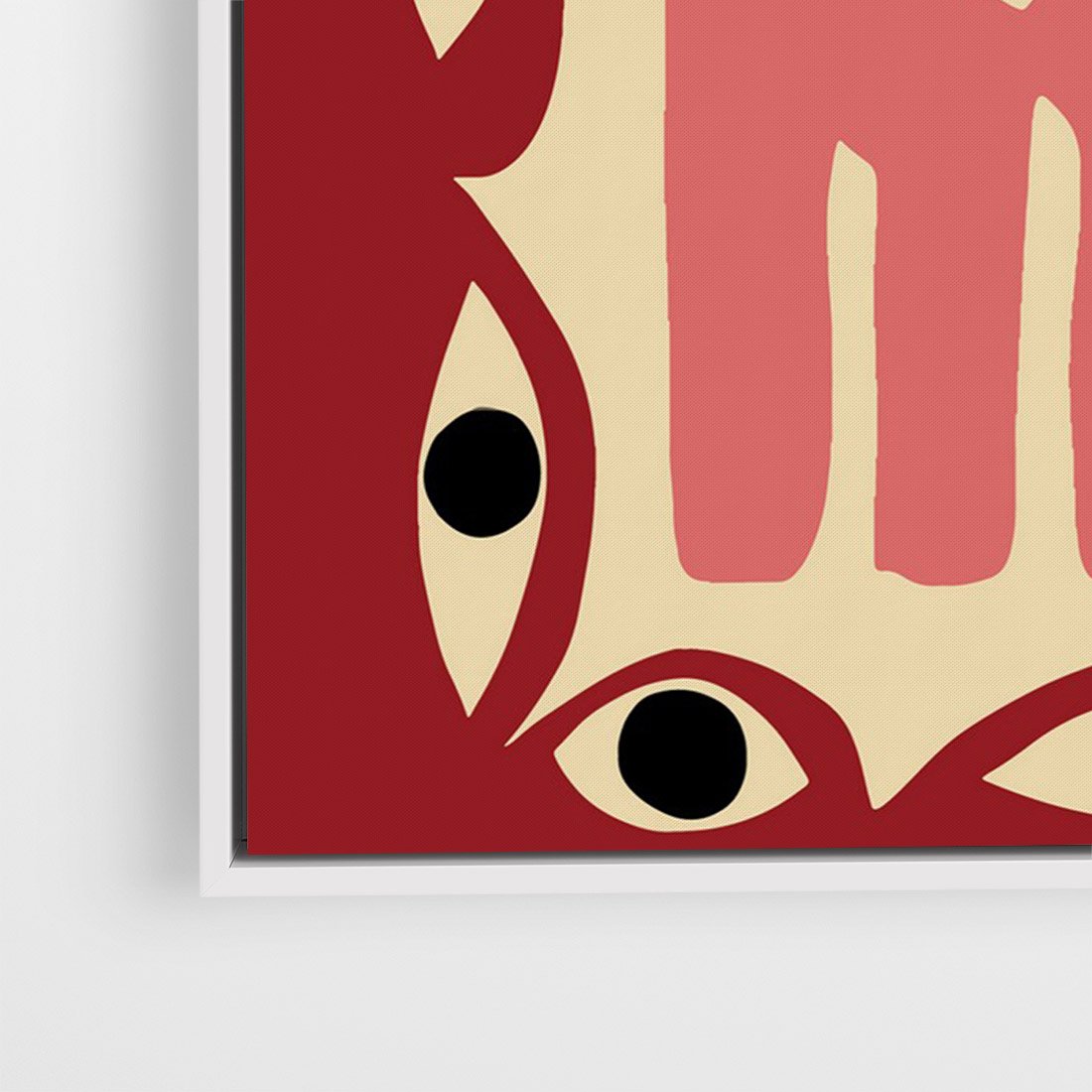 Abstrakcyjny obraz w boho stylu przedstawiający intrygującą kompozycję oczu. Intensywny bordowy kolor dodaje głębi i tajemniczości temu unikalnemu dziełu sztuki.