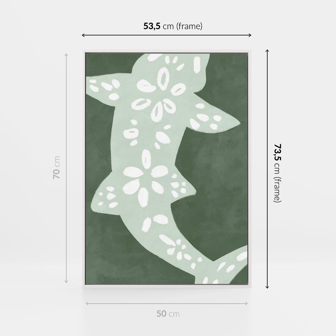 Obraz w ramie 50x70 - Migotliwe Wibracje Zieleni - zielony plakat, abstrakcja przypominająca rybę - rama biała
